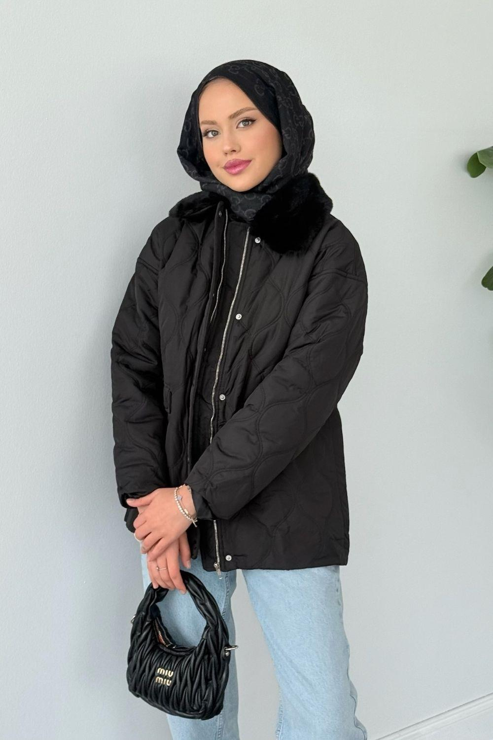 Azem Kürk Detaylı Mont Siyah (5904)