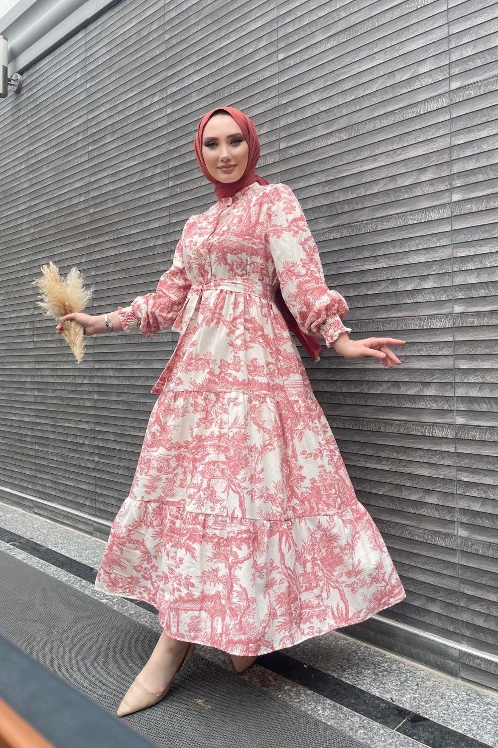 بلاط فستان الكتان المطبوع