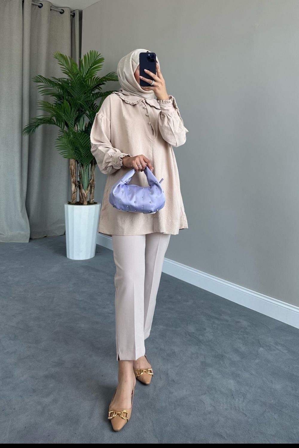 تونيك بياقة الطفل باللون البيج