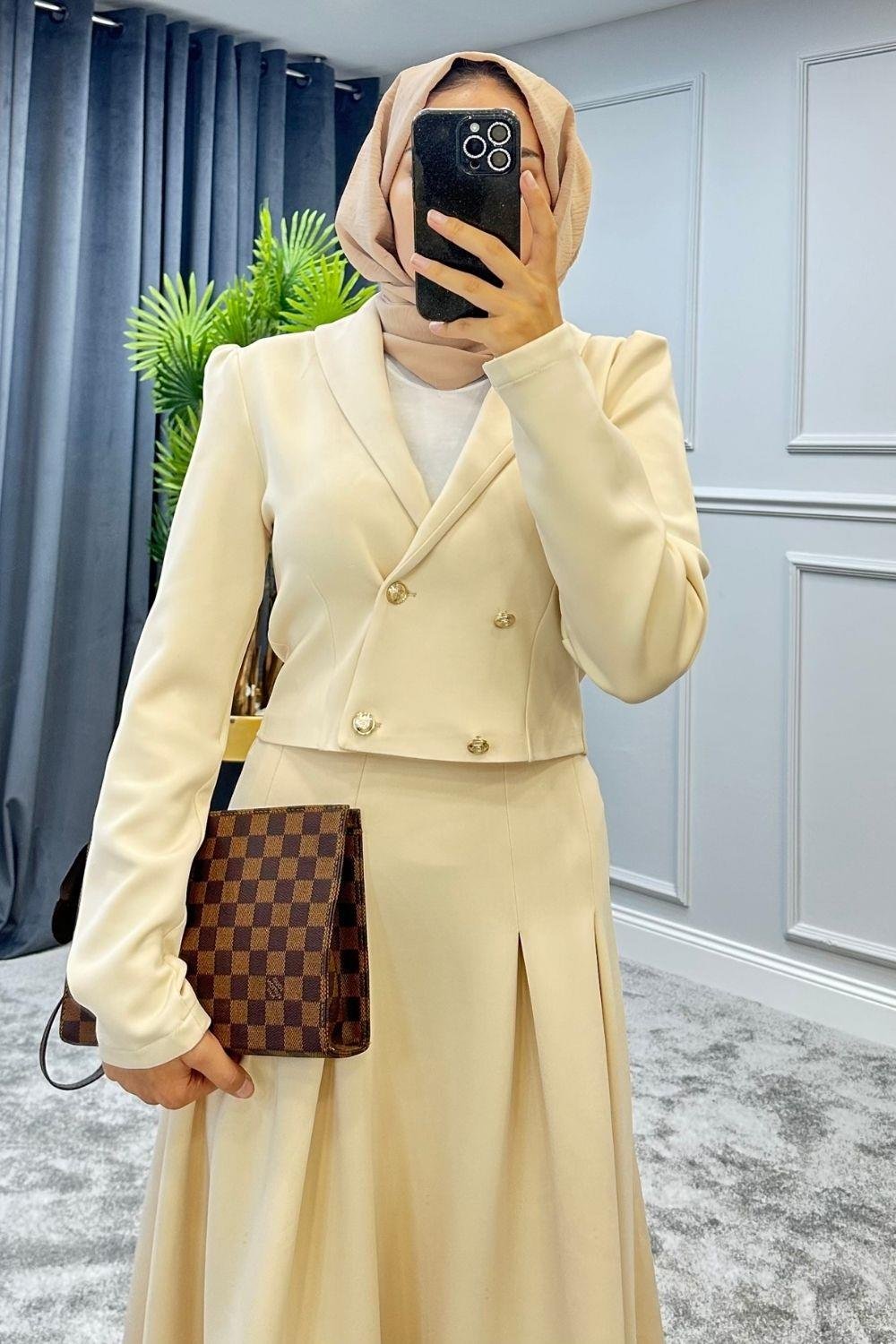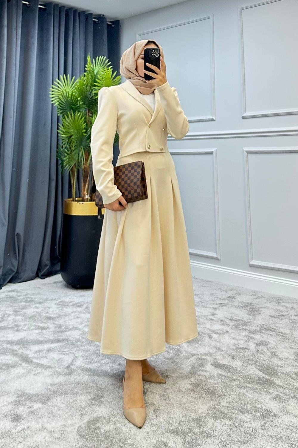 الجزء العلوي: 44 سم القاع: 90 سم نسيج الغوص التنورة بها سحاب في الخلف خصر مطاطي قليلاً قالب كامل حجم الموديل: مقاس 1 (36-38)