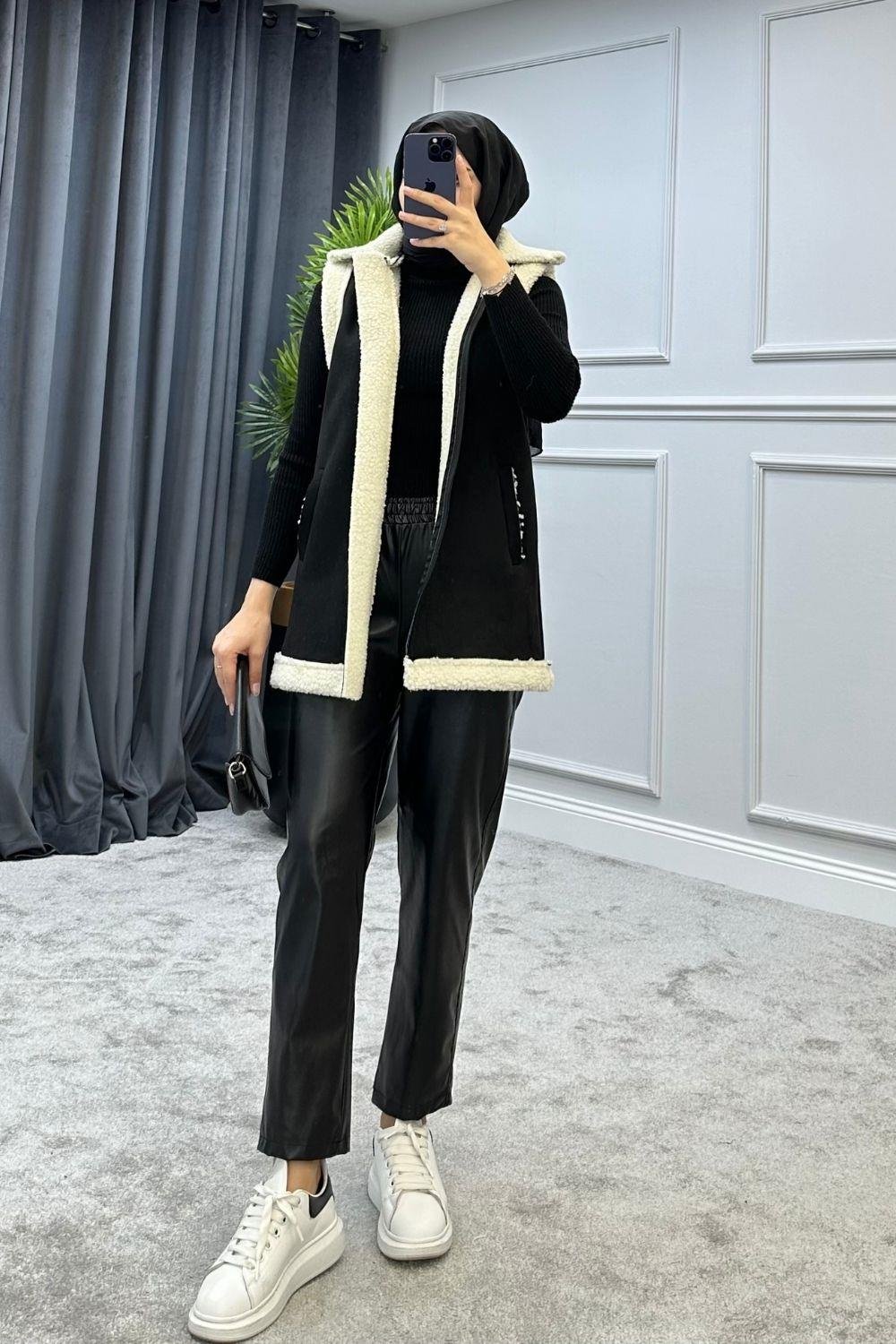 سترة راكب الدراجة النارية باللون الأسود (5970)