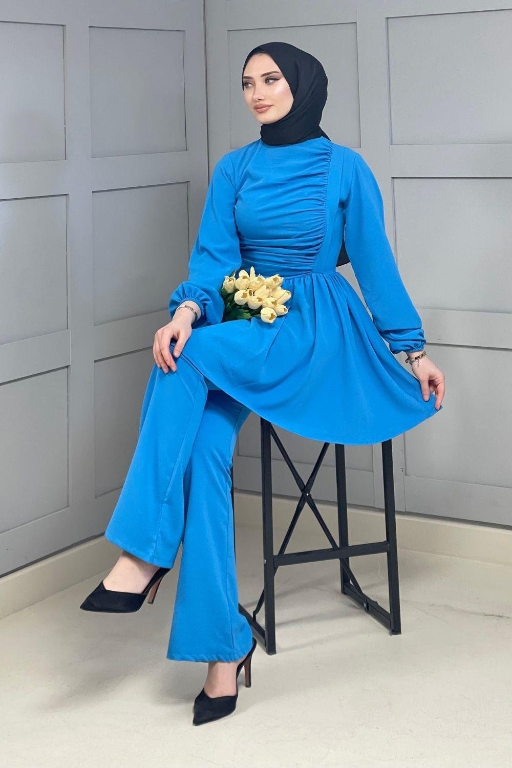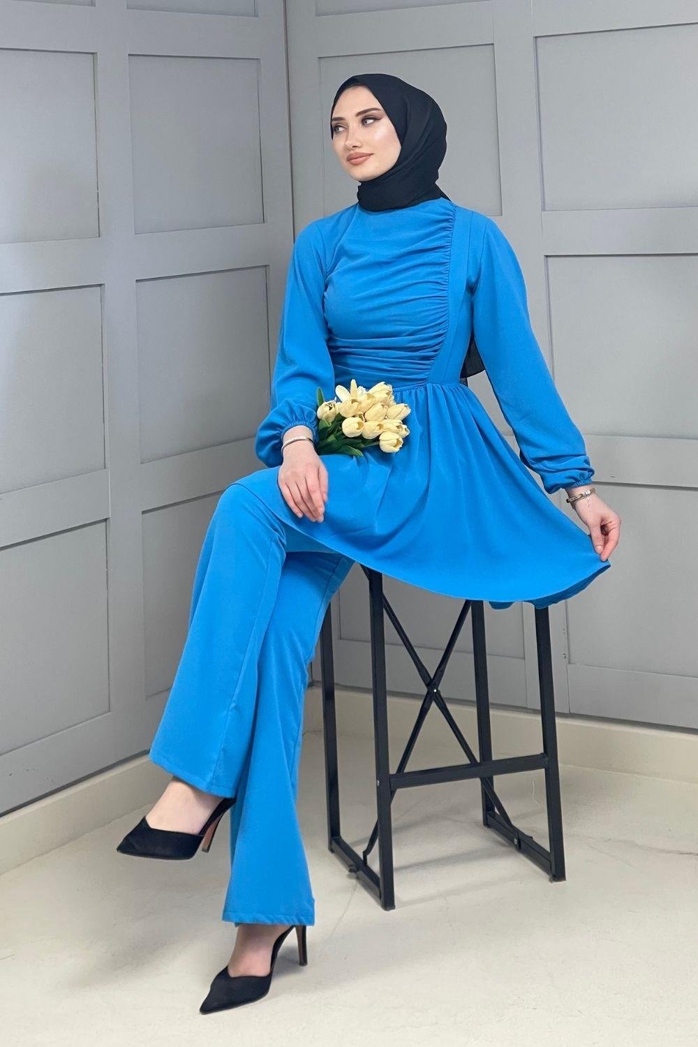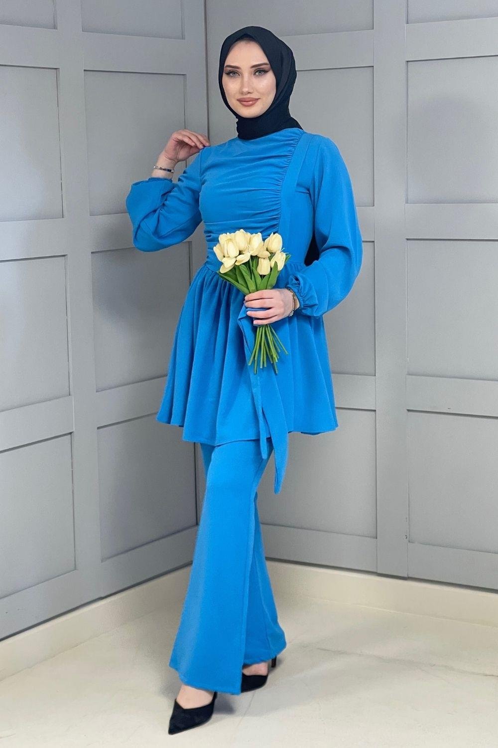 بدلة مجمعة من جانب واحد باللون الأزرق (60053)