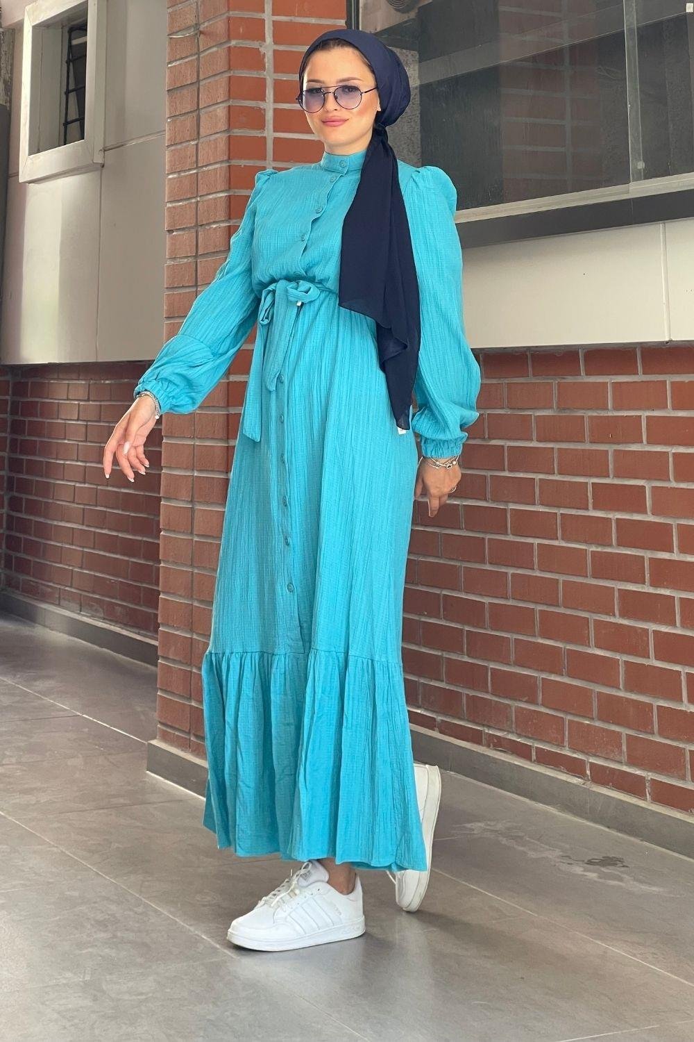 فستان ملفوف بأزرار باللون الأزرق (1420)