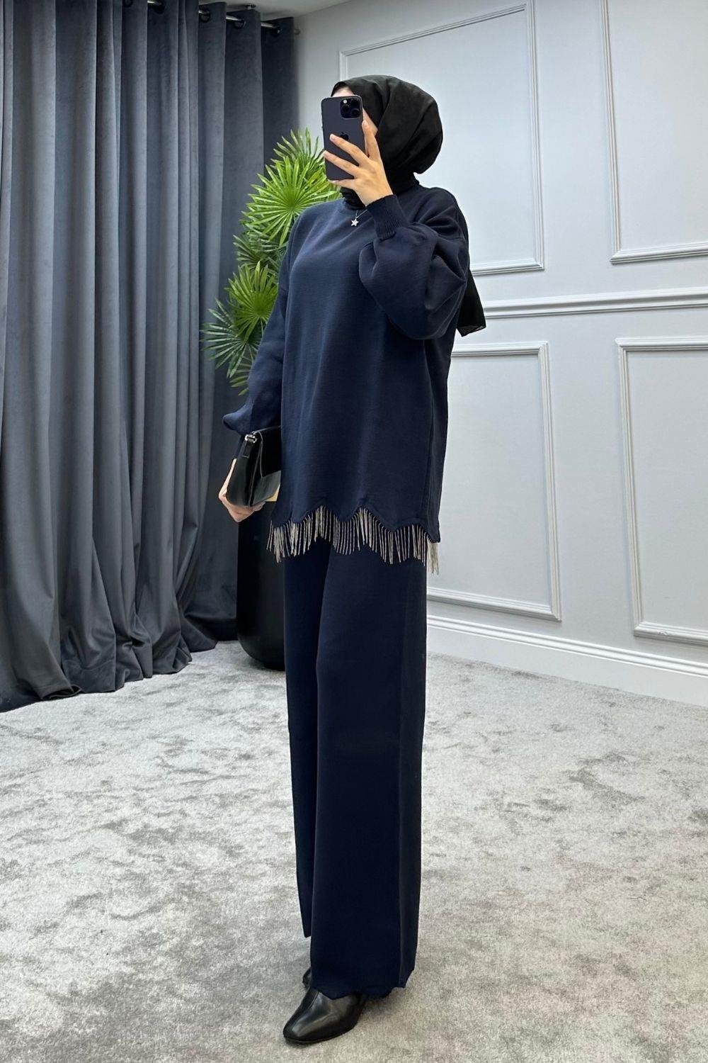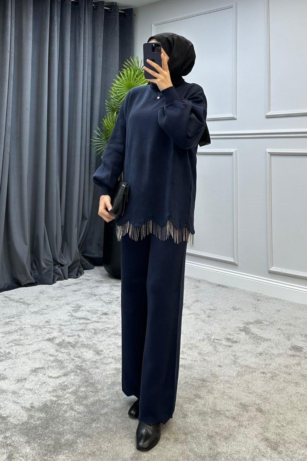 البنطلون 110 سم الجزء العلوي 75 سم بنطلون خصر مطاطي تريكو قالب كامل متوافق حتى مقاس 36/44