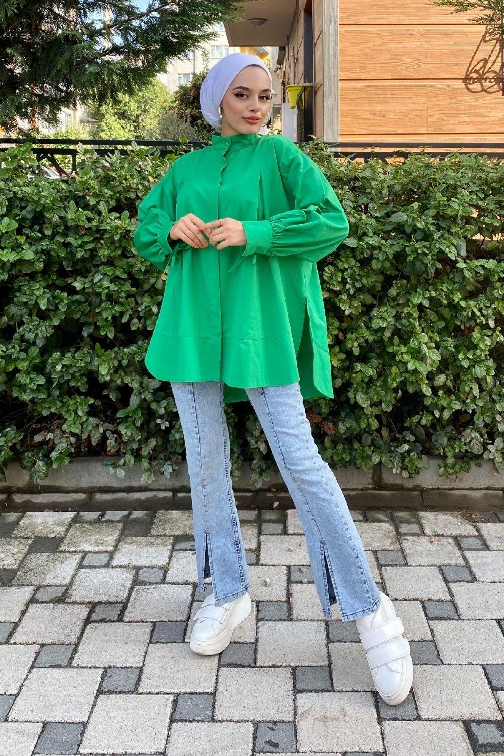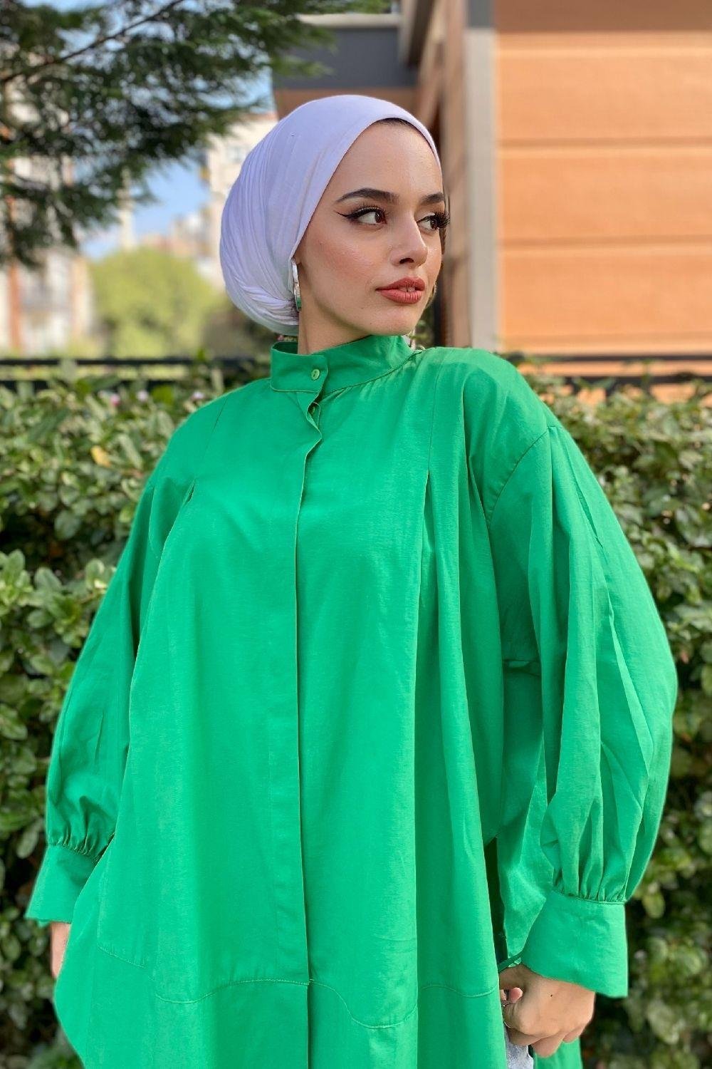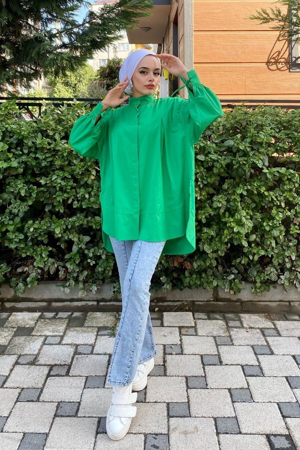 قميص بوبلين واسع بطيات باللون الأخضر (8622)