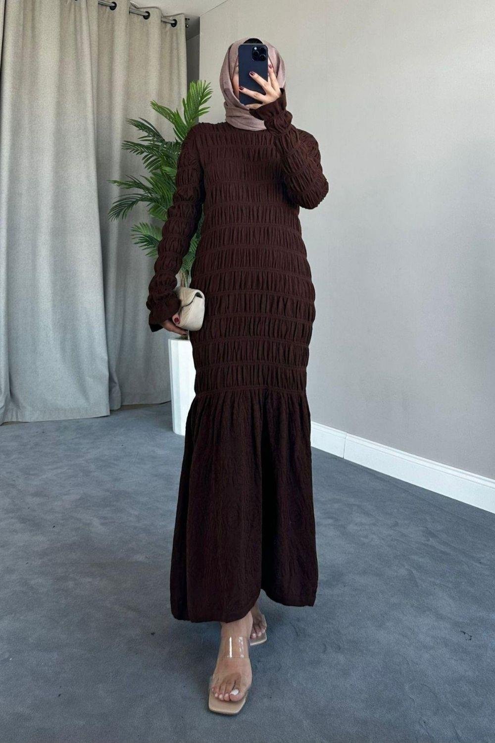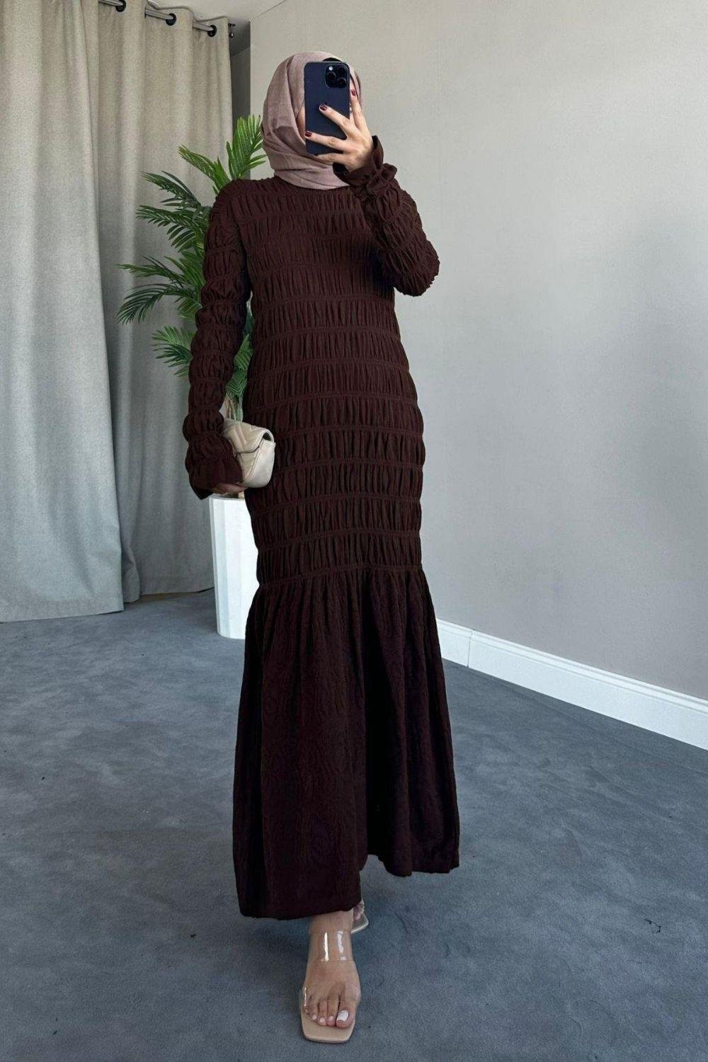 مواصفات المنتج نسيج تريكو ناعم إنه حجم قياسي طوله 133 سم يناسب حتى مقاس 36-42 ارتفاع الموديل 168 سم 53 كجم