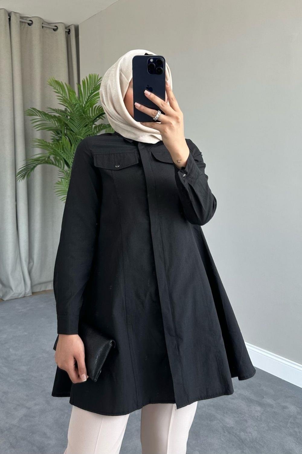 تونيك بأزرار مخفية باللون الأسود (23256)