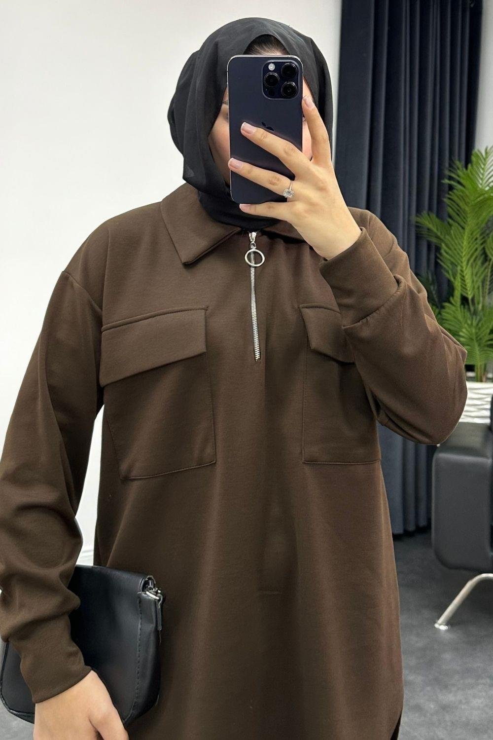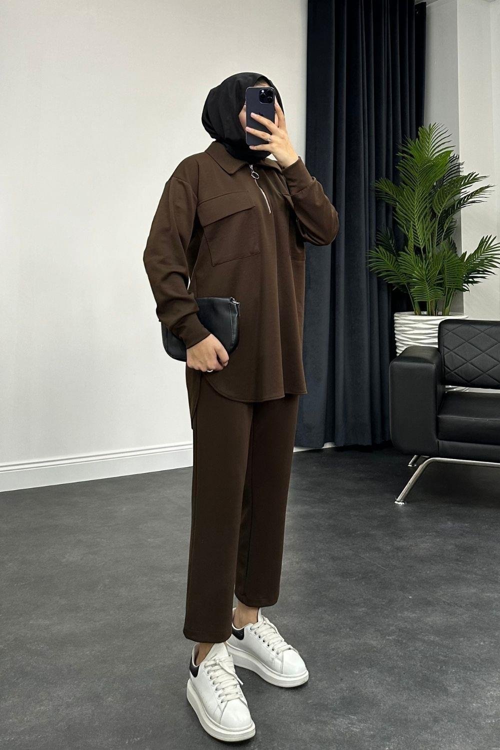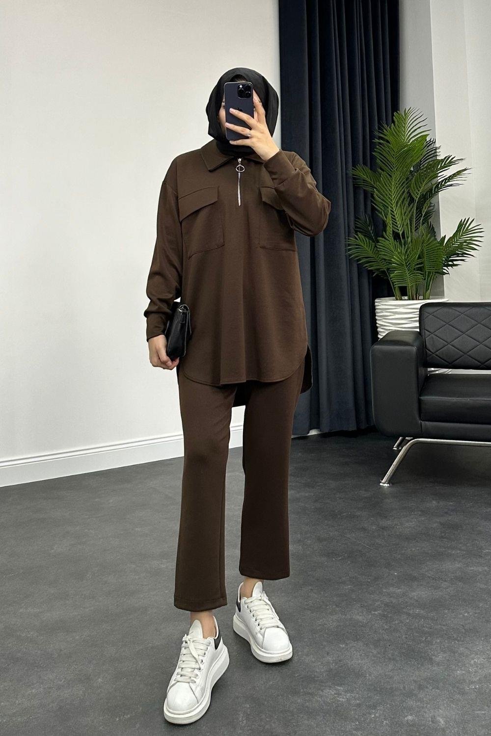 بدلة بسحاب بجيبين باللون البني (8208)