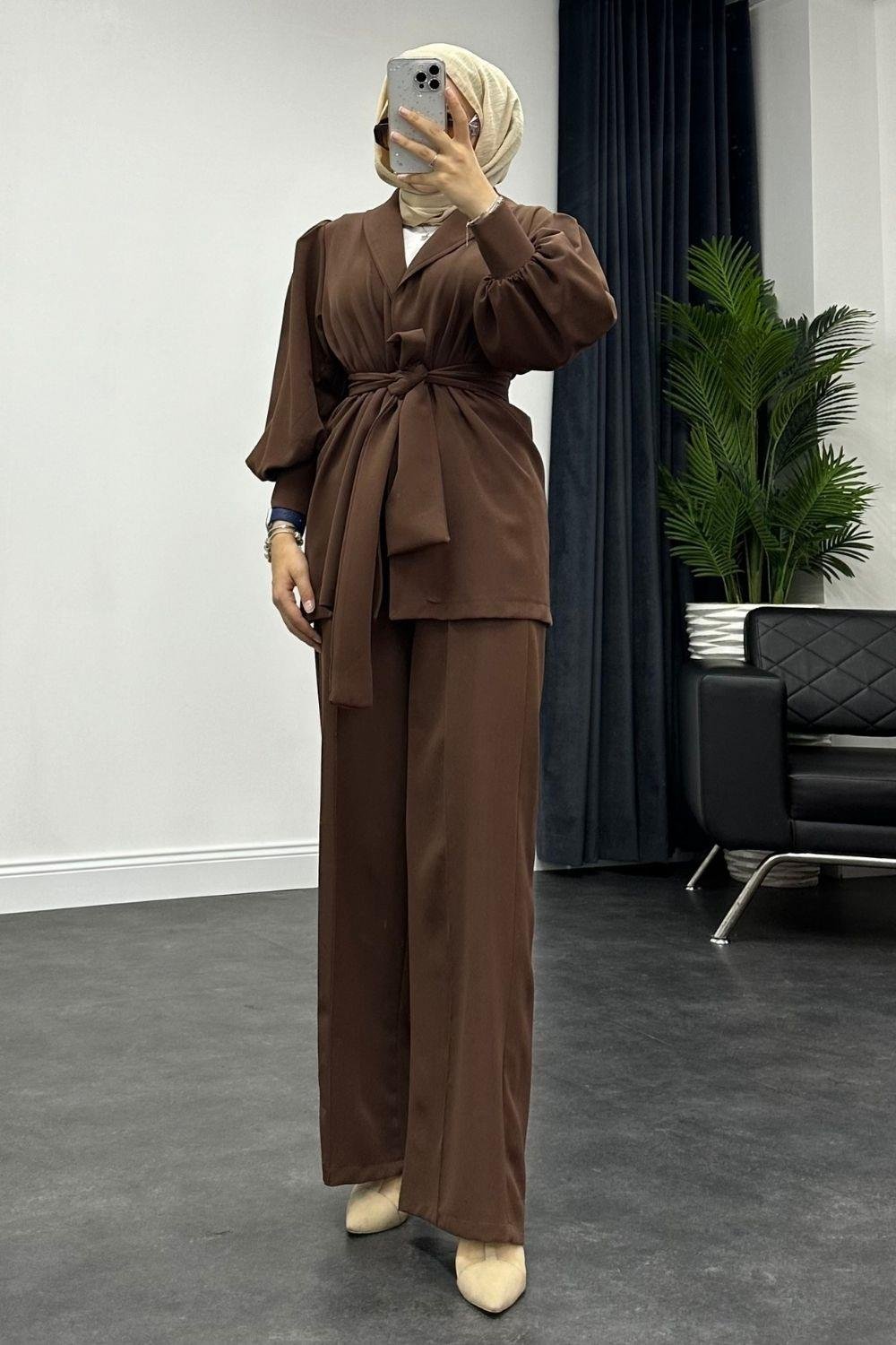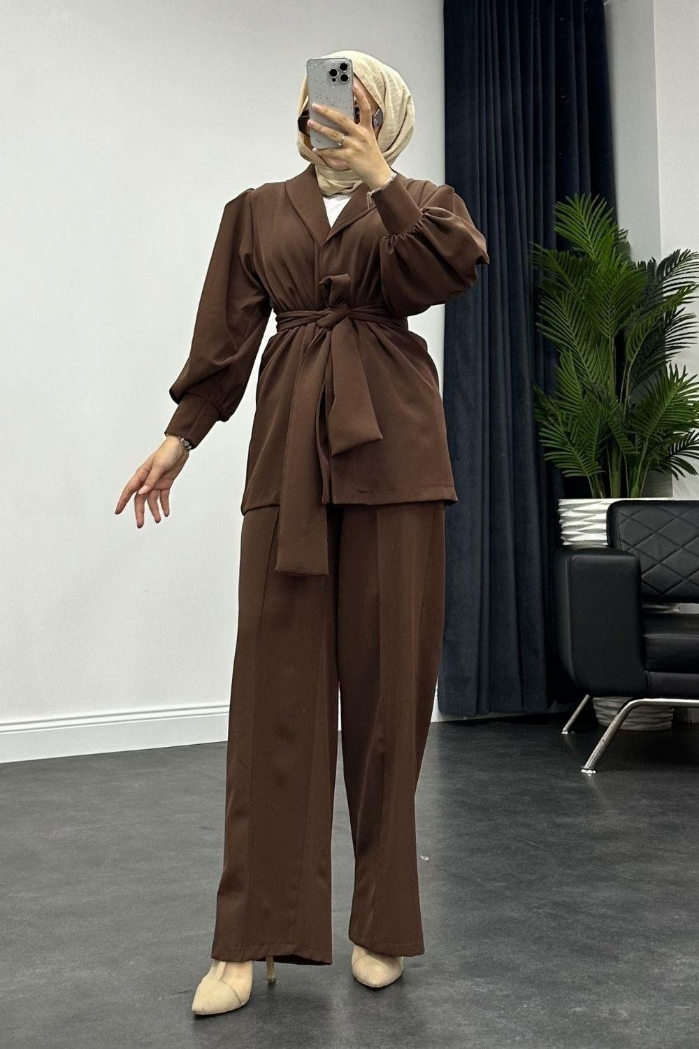 طقم بنطلون إنسيلا باللون البني (4225)