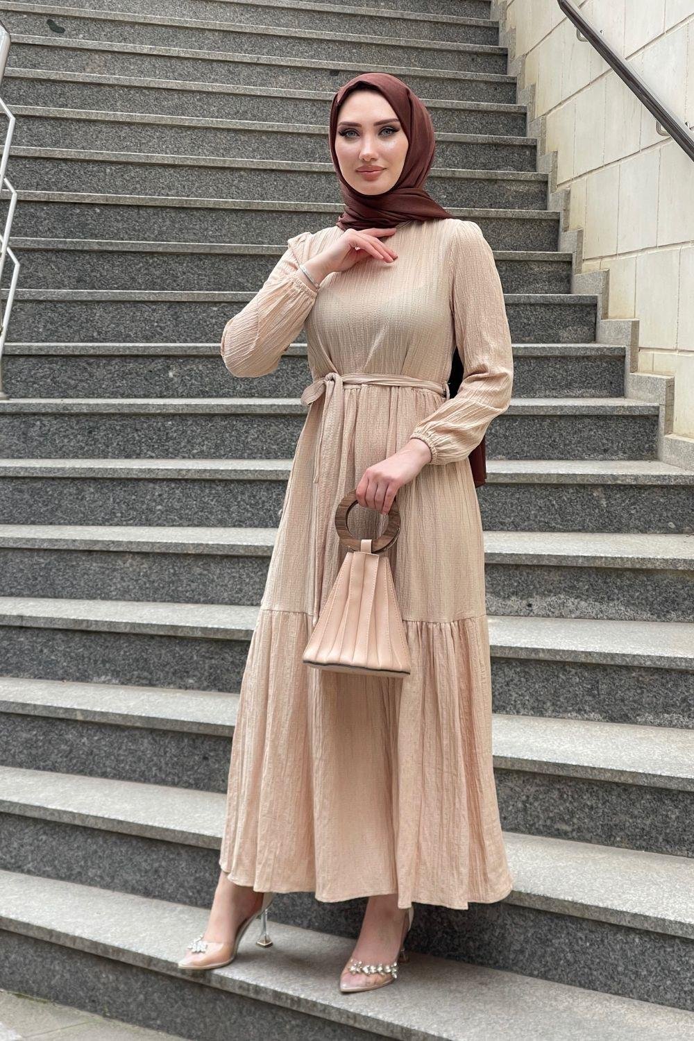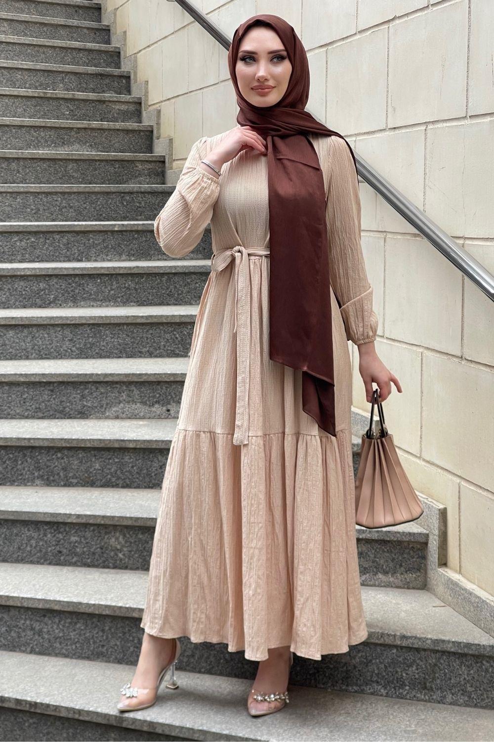 فستان ماكسي مخطط ذاتيًا جملي (8052)