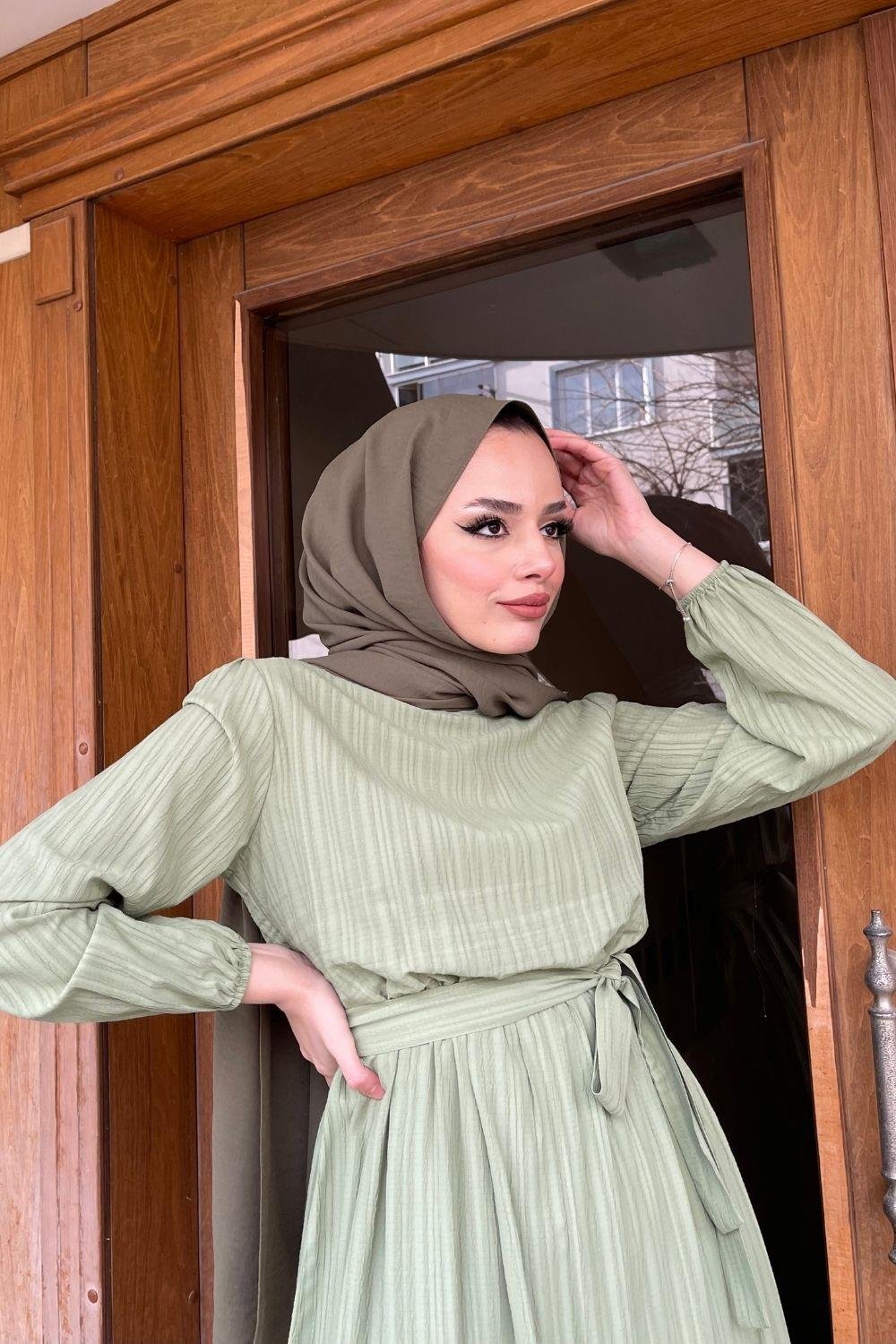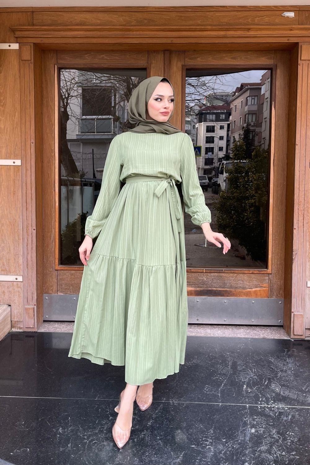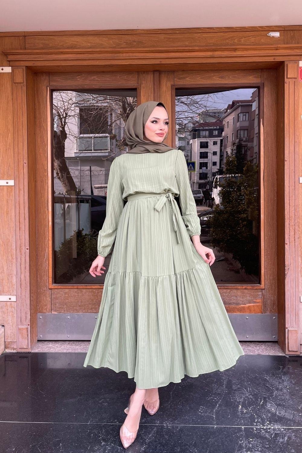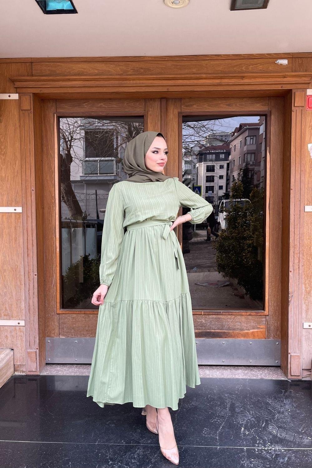 فستان ماكسي مخطط ذاتيًا نعناعي (8052)