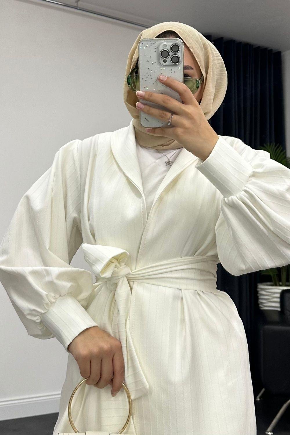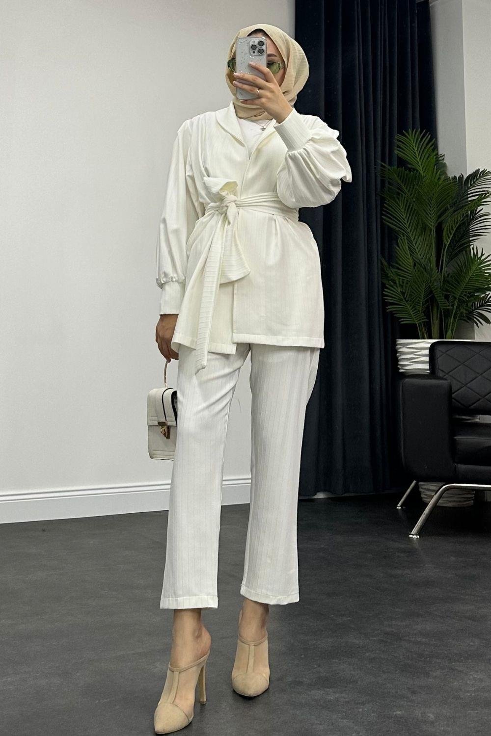 بدلة مخططة ذاتيًا باللون الأبيض (4227)