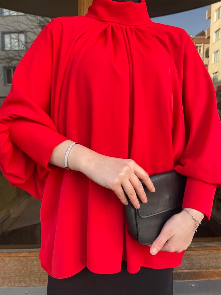 طوق الأكمام جمع بلوزة مفصلة باللون الأحمر (2720)