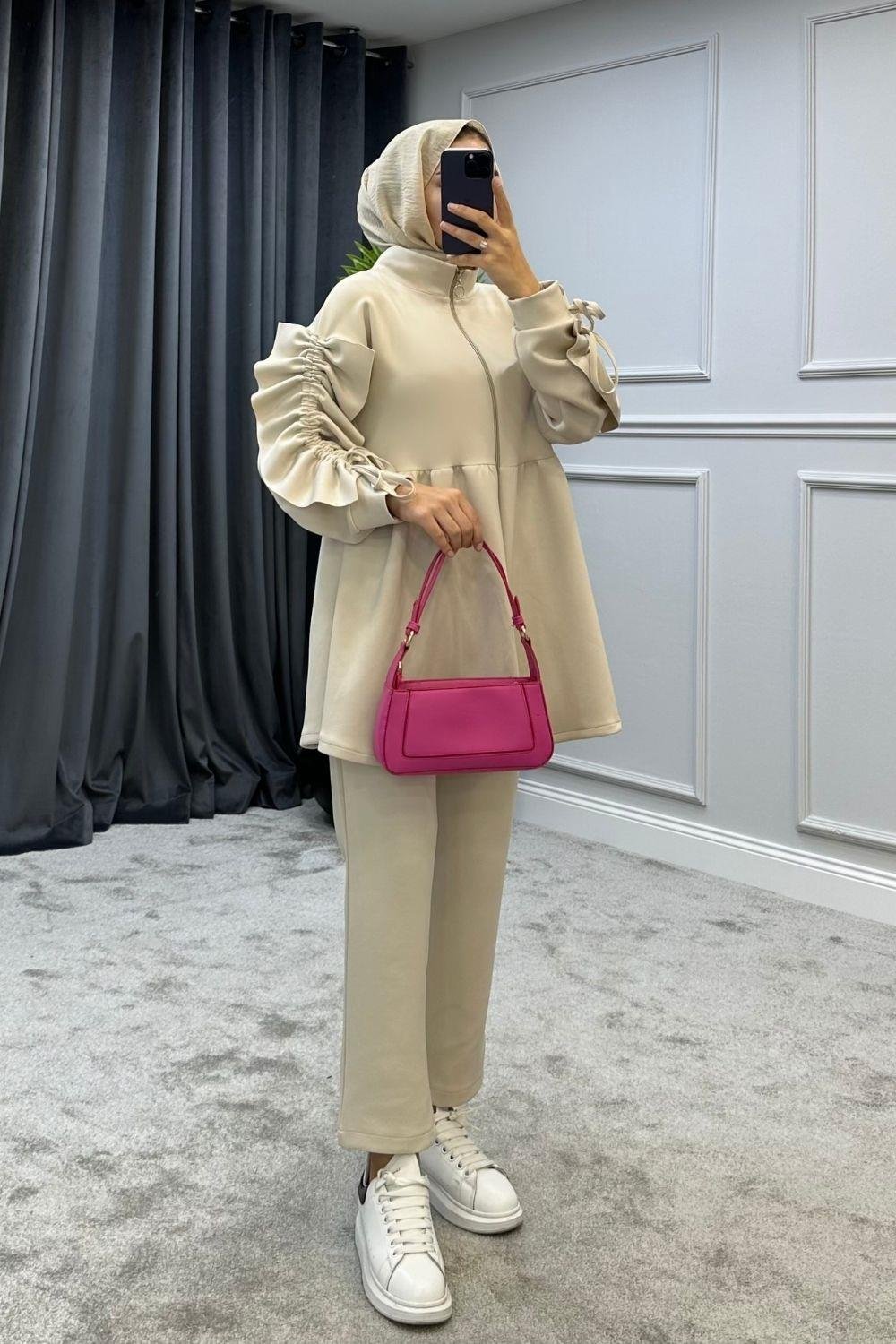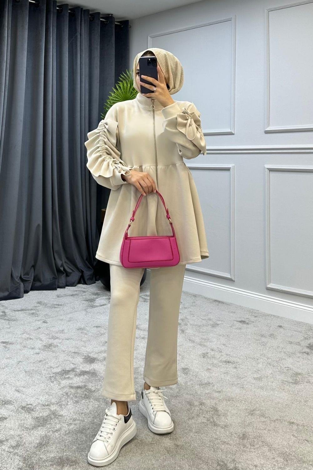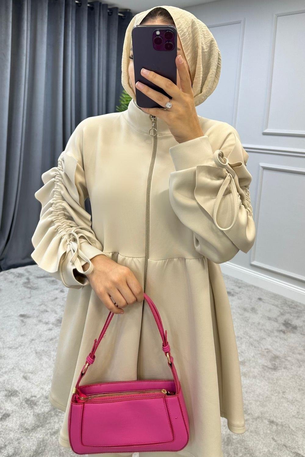 بدلة غوص بأكمام مجمعة باللون البيج (2064)