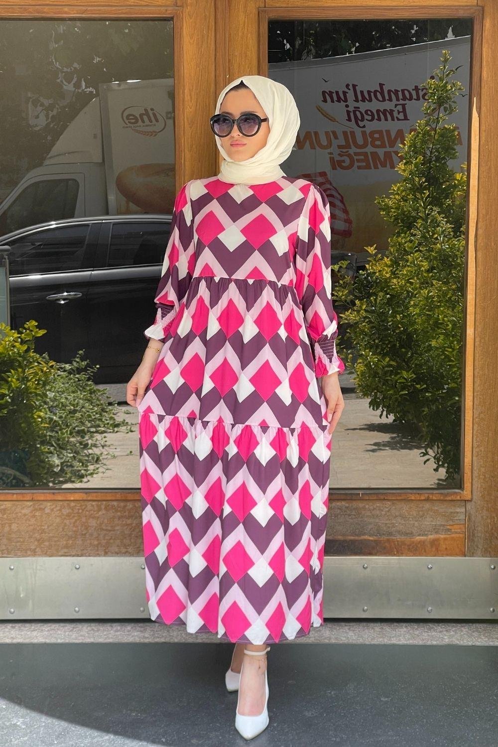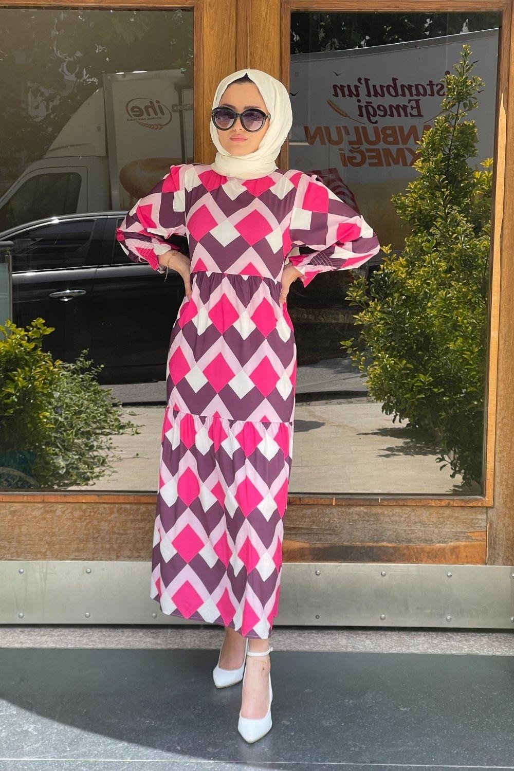 فستان بأكمام لامعة باللون الفوشيا (8515)