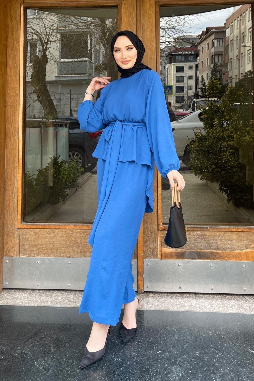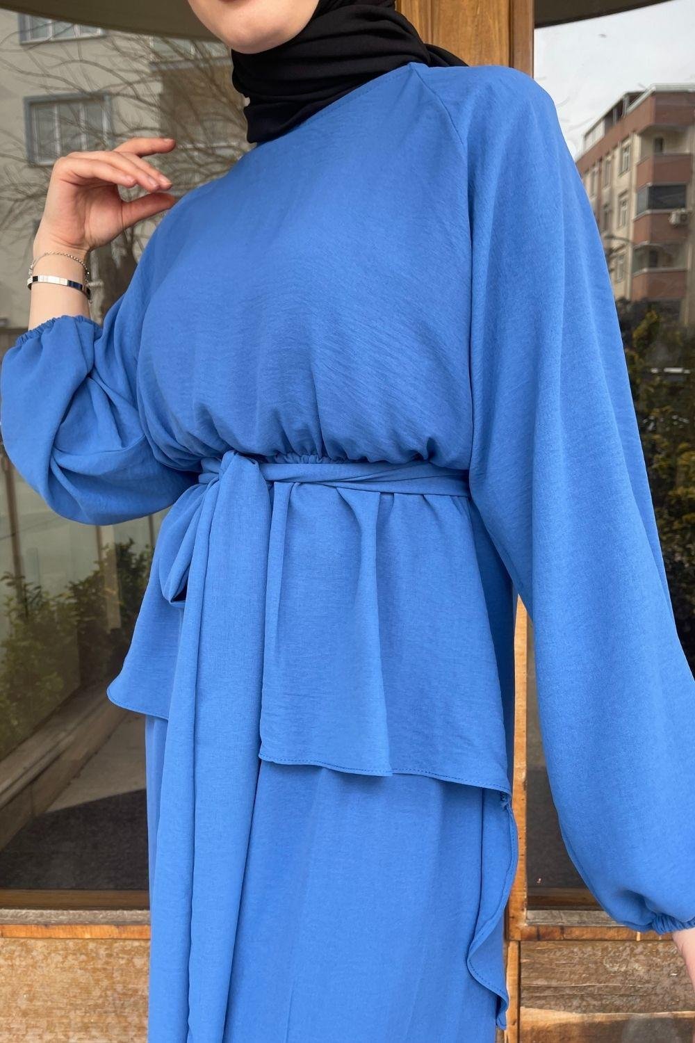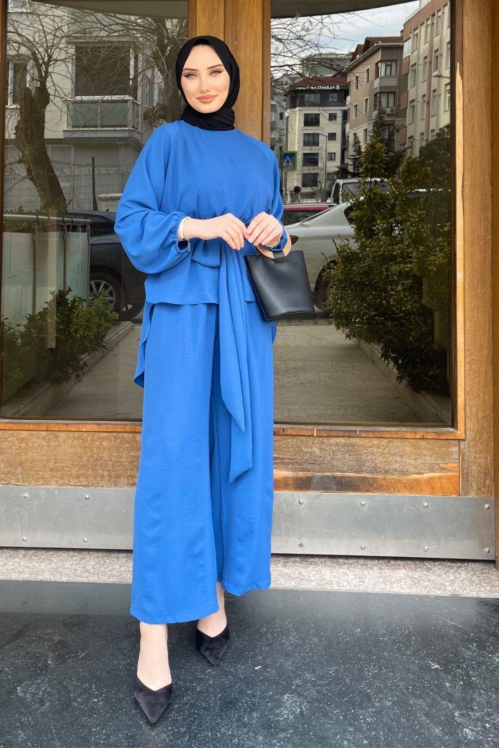 بنطلون أيروبين بحزام يناسب اللون النيلي (5523)