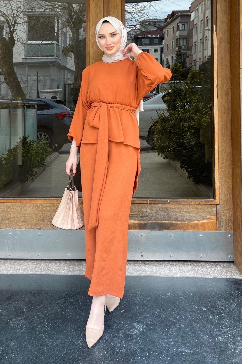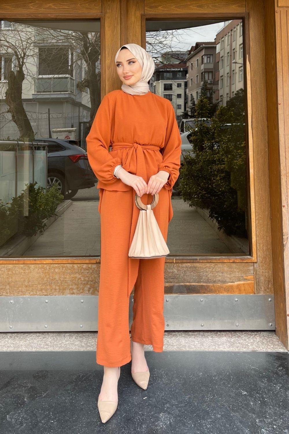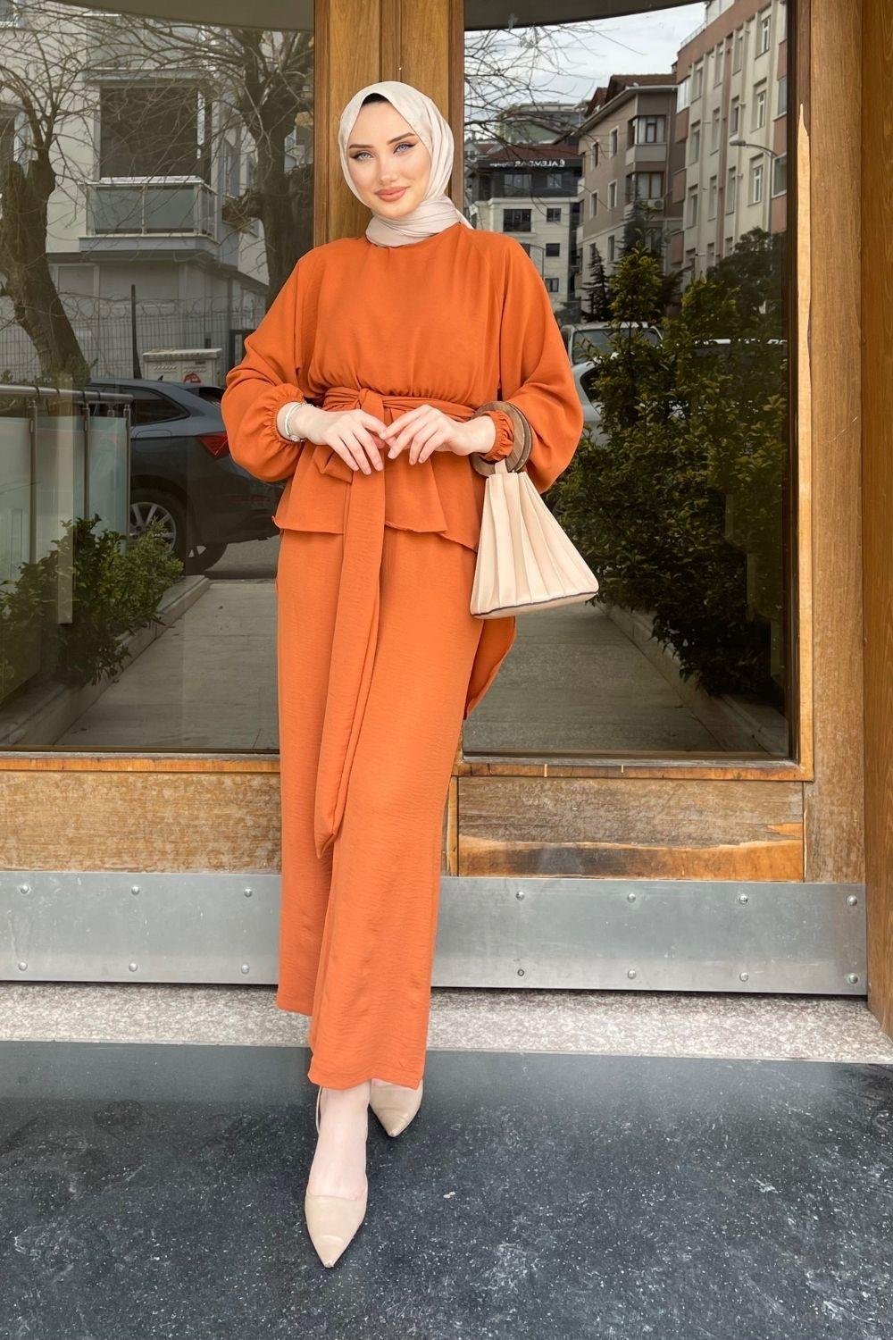 طقم بلاط بلاط مع بنطلون أيروبين بحزام (5523)