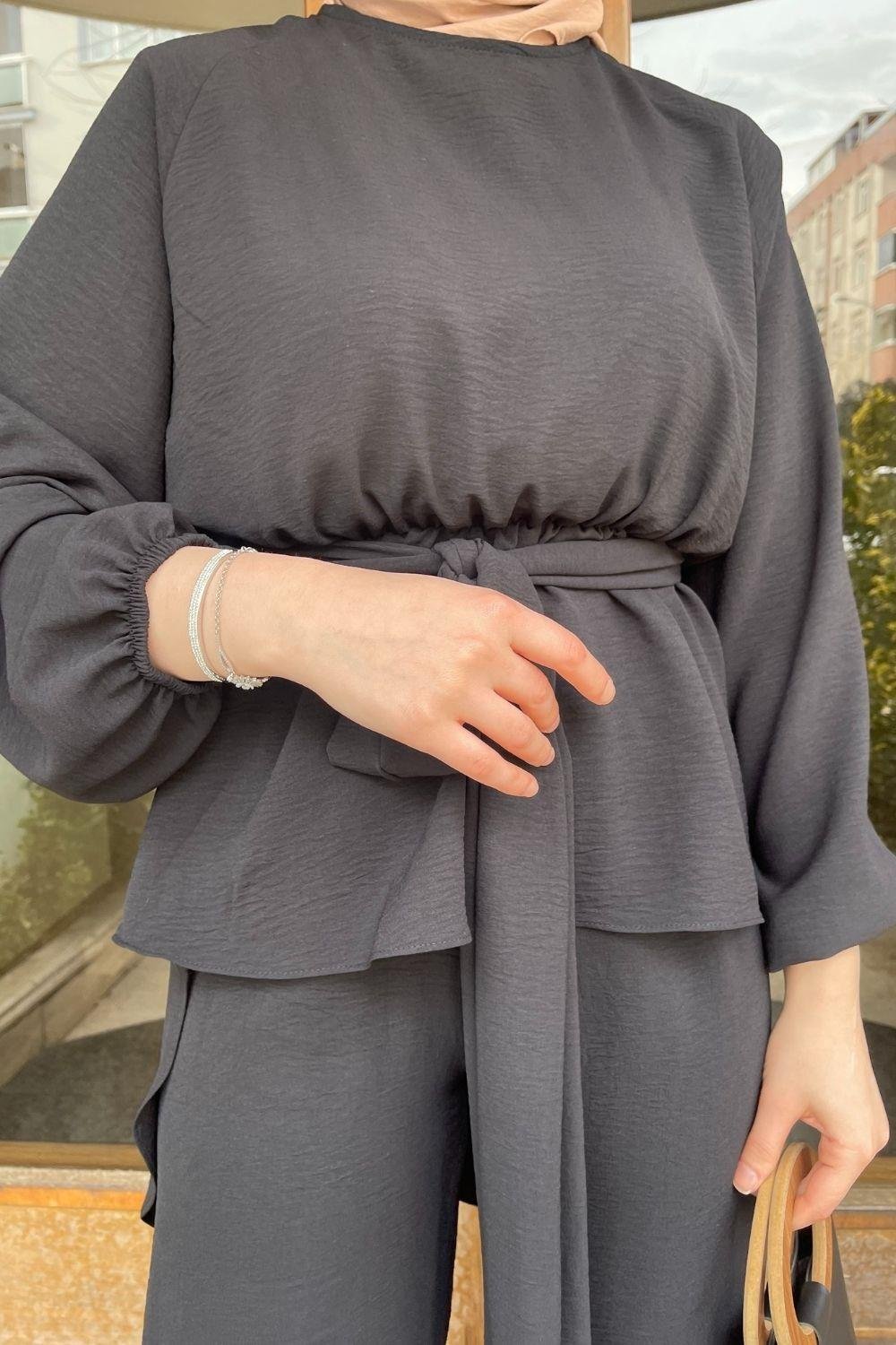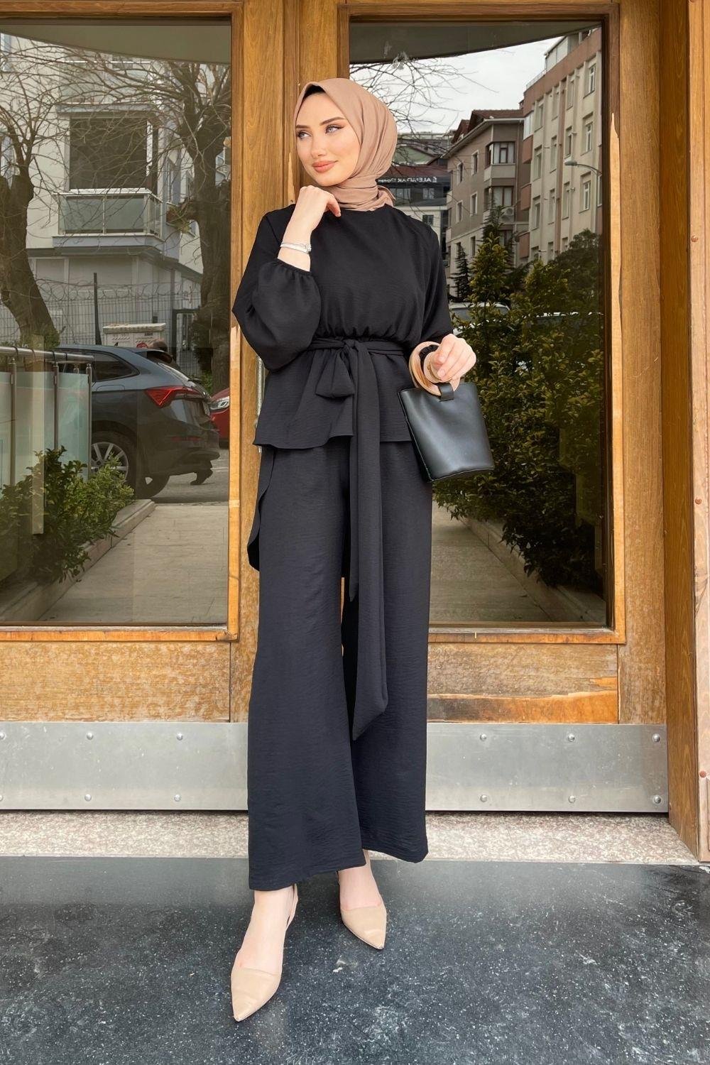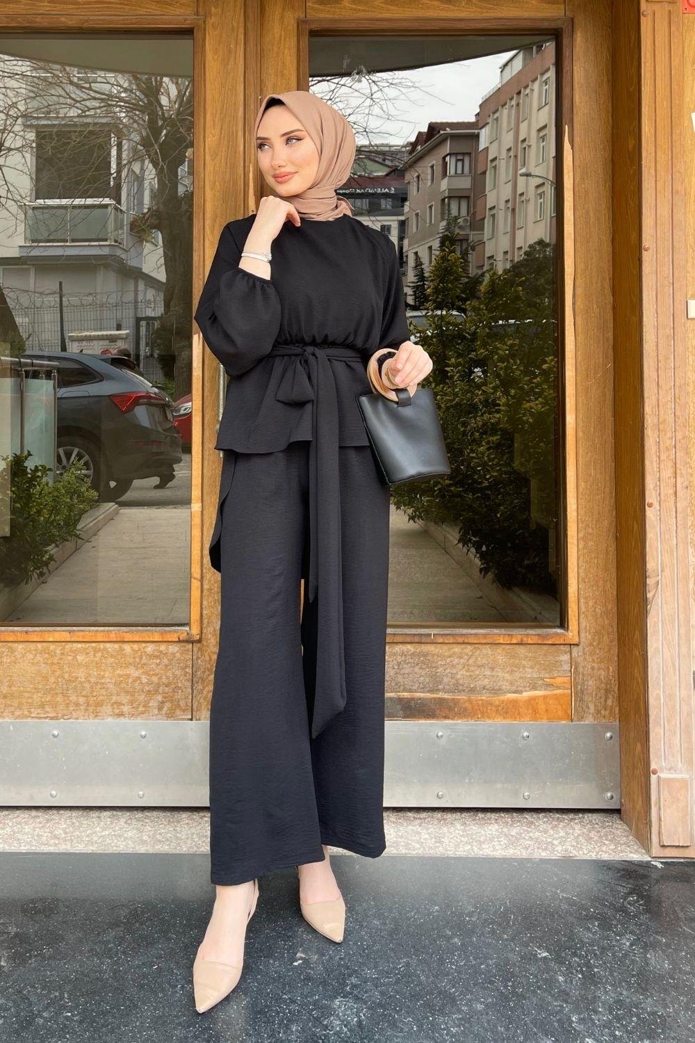 بدلة بنطلون أيروبين بحزام أسود (5523)