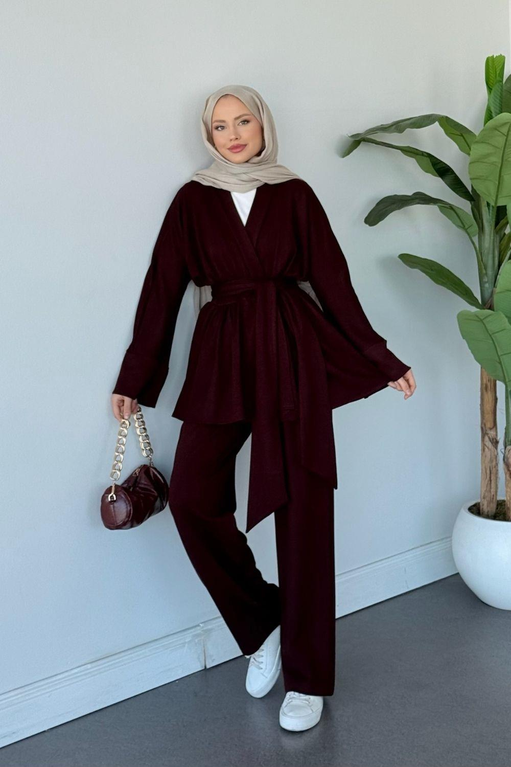 Obje Kimonolu Takım Bordo (20225)