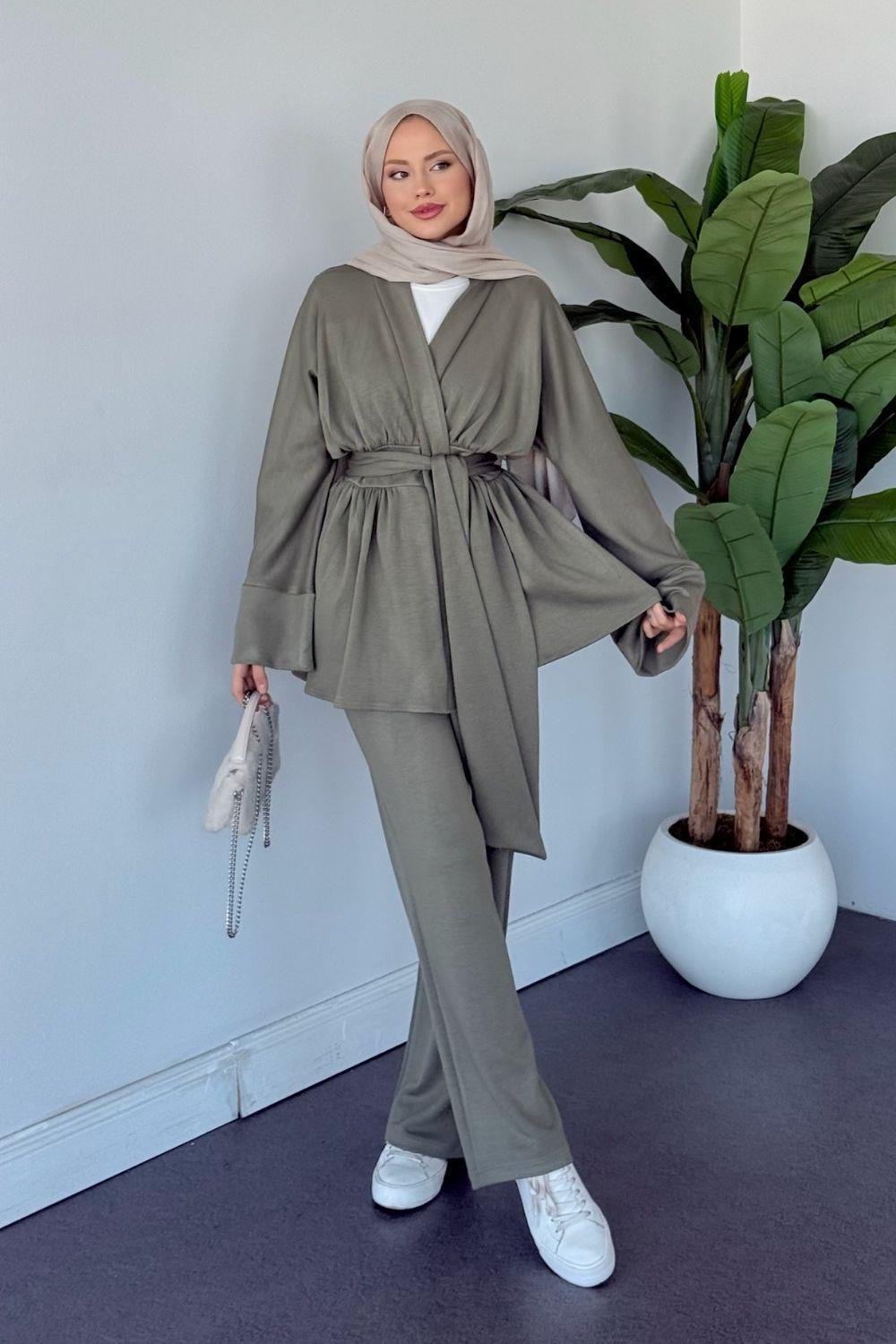 Takım, günlük kullanım için ideal bir seçimdir. Modal kumaşın doğal yumuşaklığı ve nefes alabilirliği sayesinde tüm gün konfor sunar. Pratik set formu sayesinde kombin yapma derdi olmadan şık bir görünüm elde edebilirsiniz. Kendinden kuşaklı tasarımı hem rahatlık hem de stil sunarak günlük hayatınıza pratiklik katacaktır.