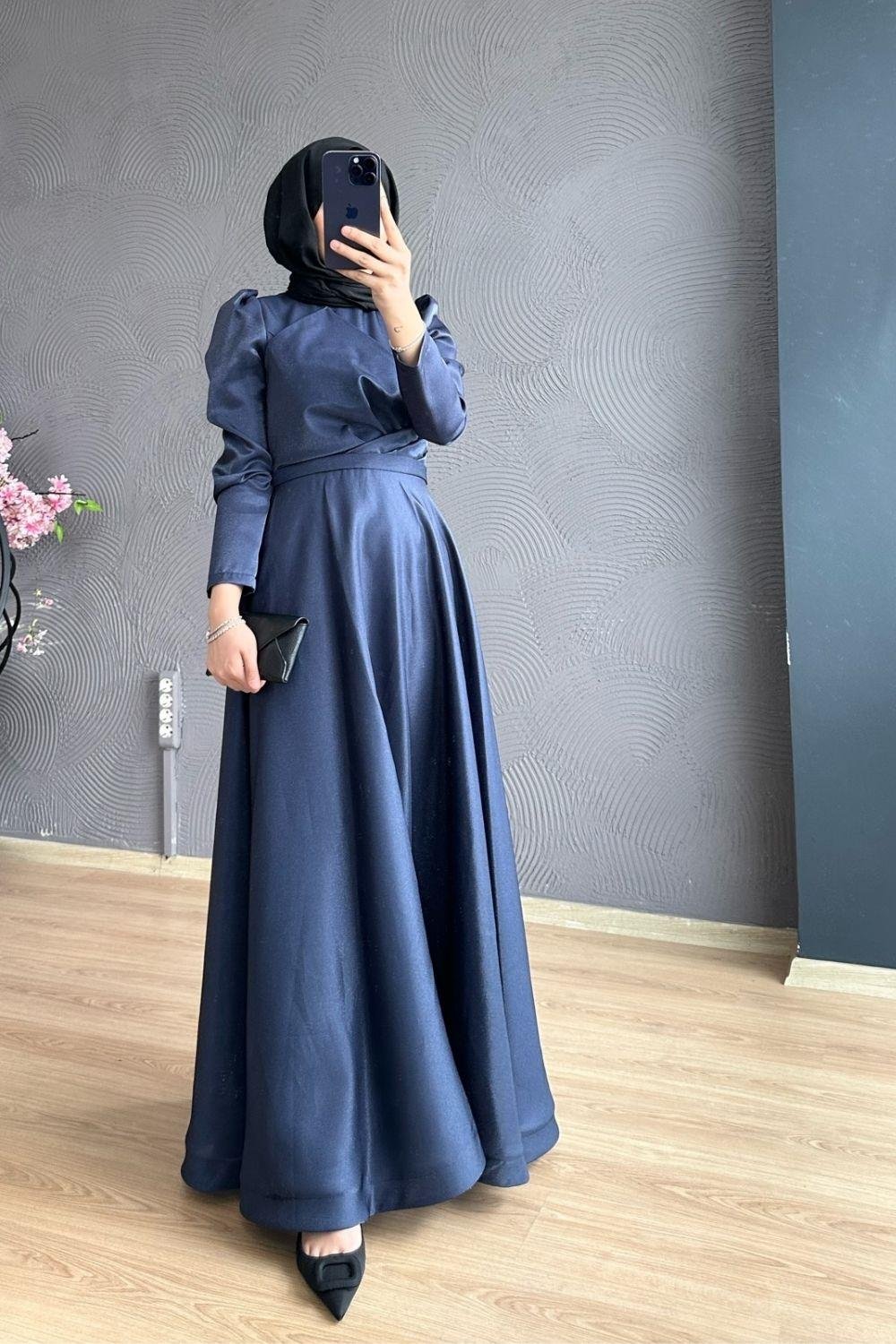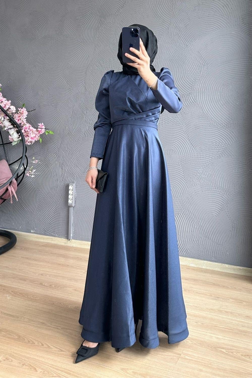 فستان سهرة متقاطع من الأمام باللون الأزرق الداكن (4331)