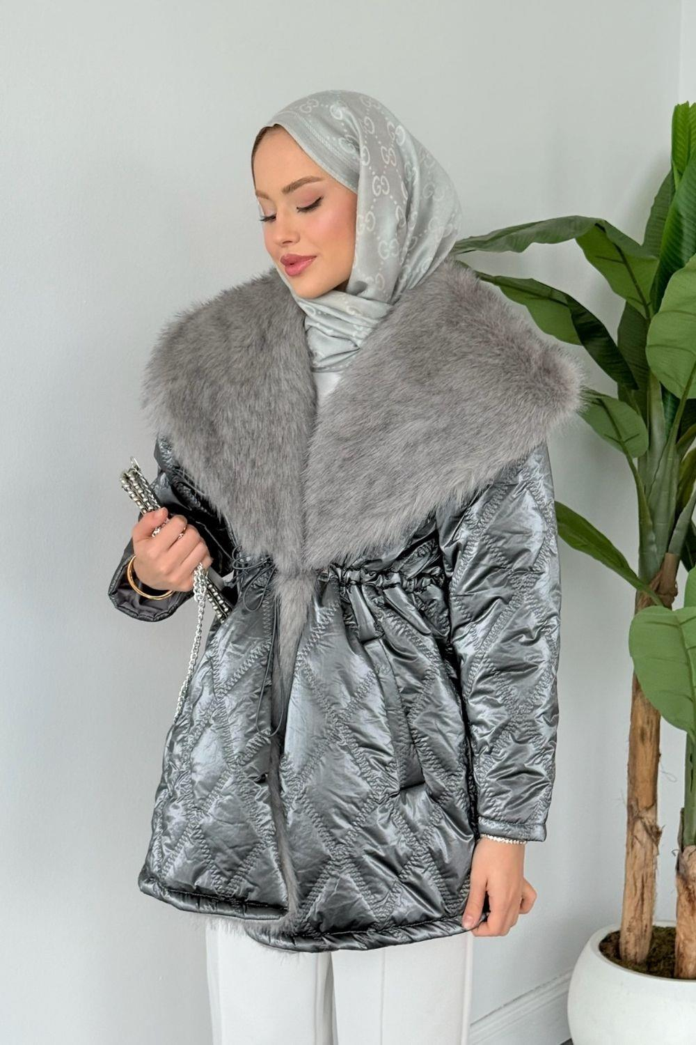 Pay Kürklü Şişme Mont Füme (6171)