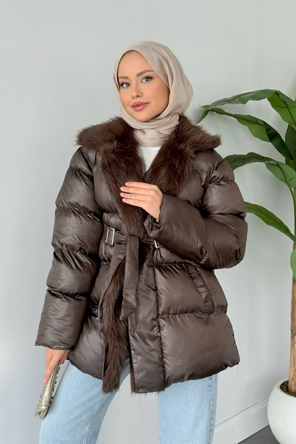 Yaka kısmında lüks boydan kürk detayı ile zarif dokunuş