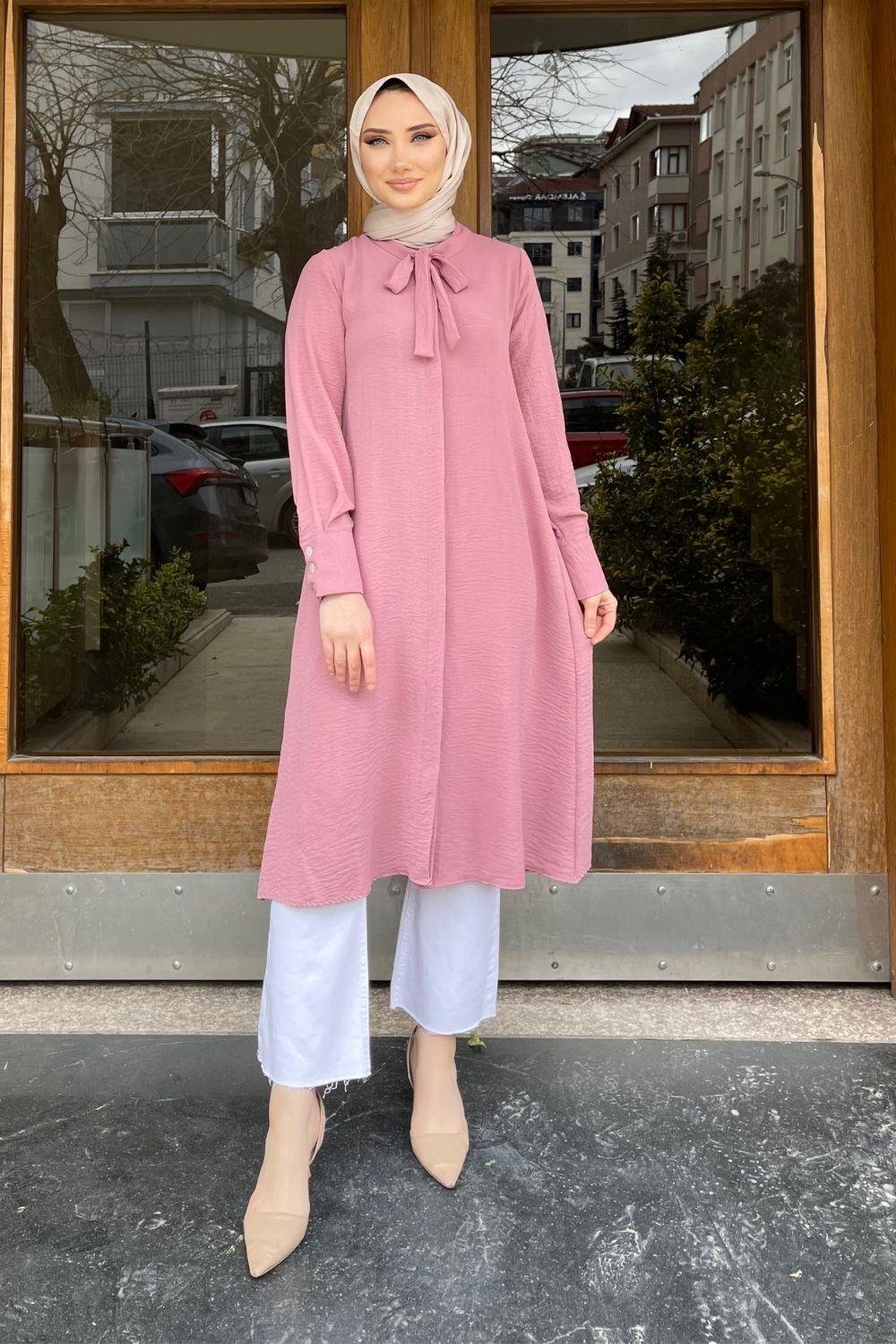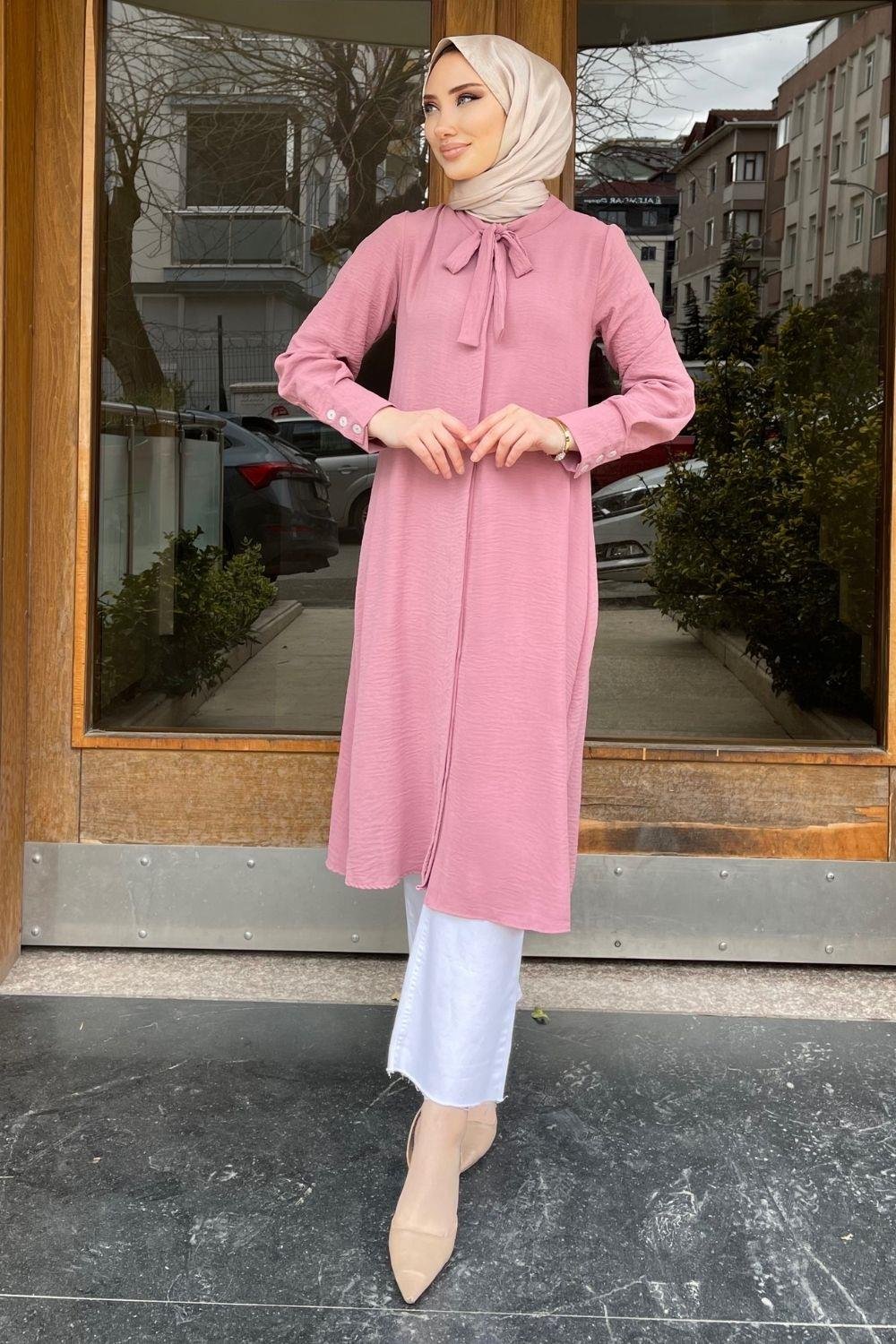 مسحوق تونيك ذو ياقة مربوطة