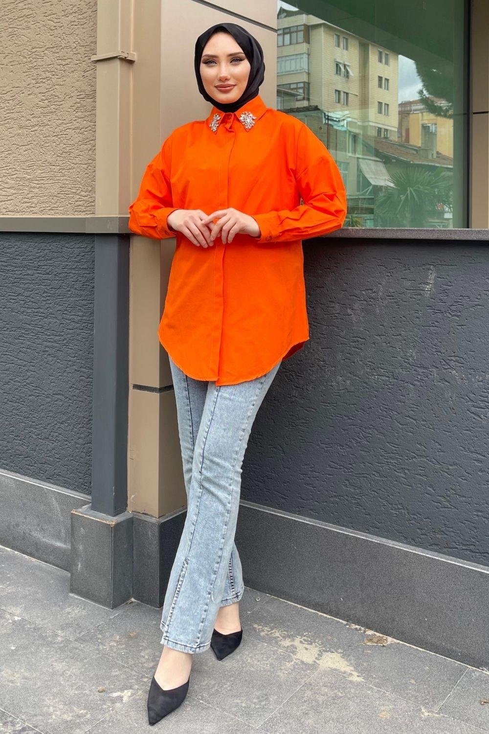 قميص ذو ياقة مرصعة باللون البرتقالي (9001)