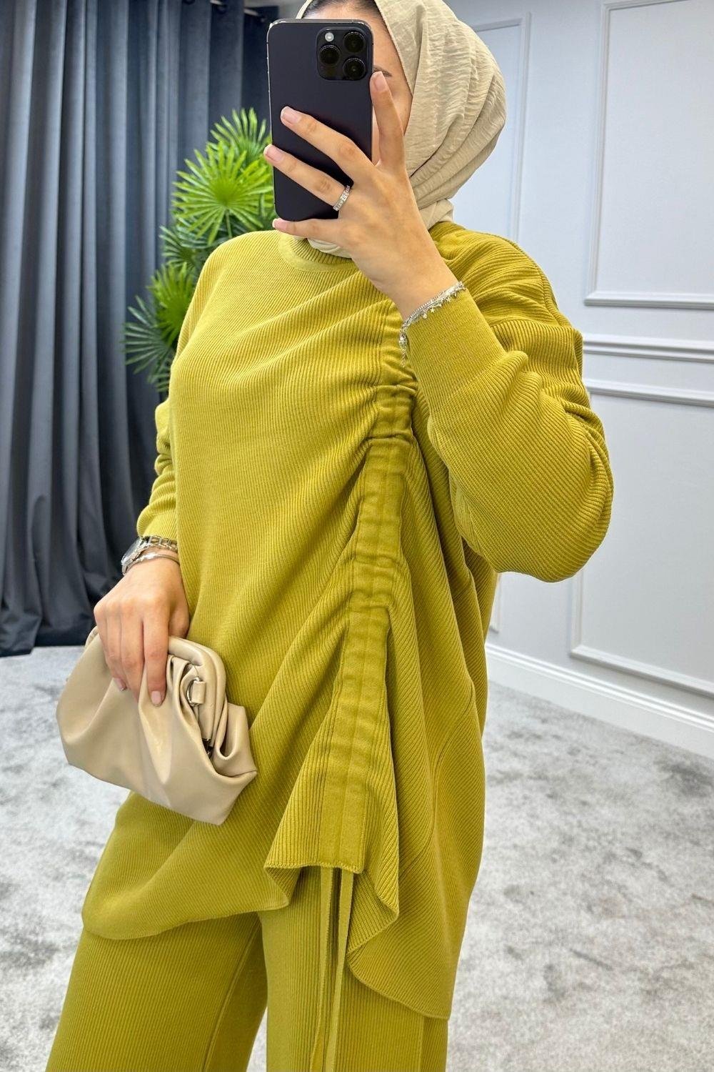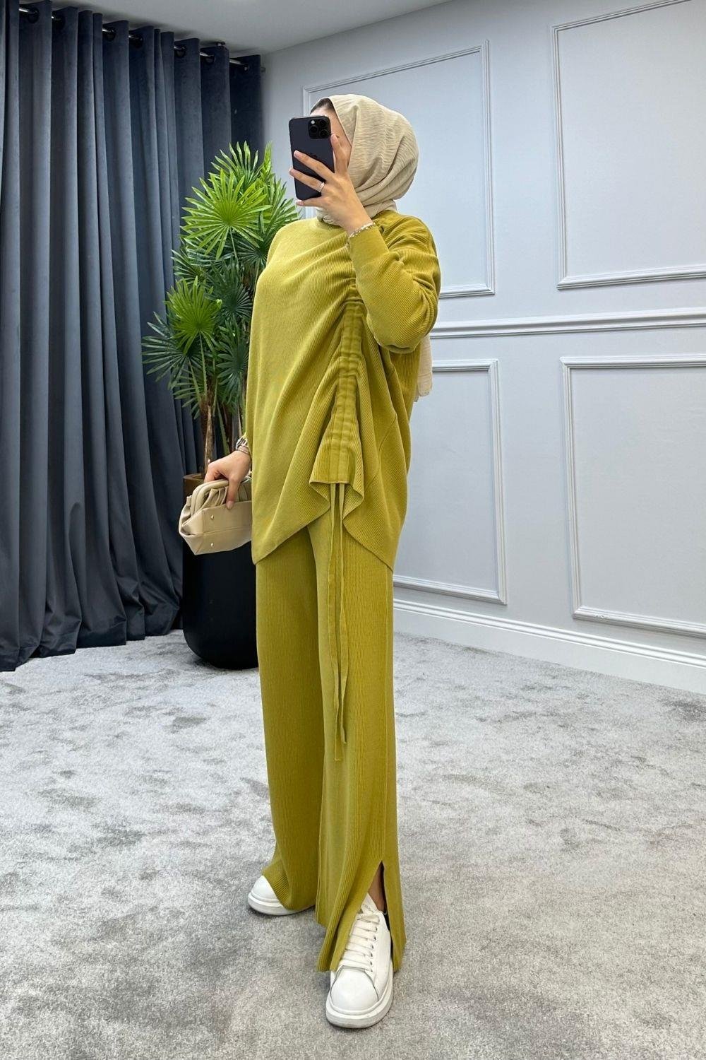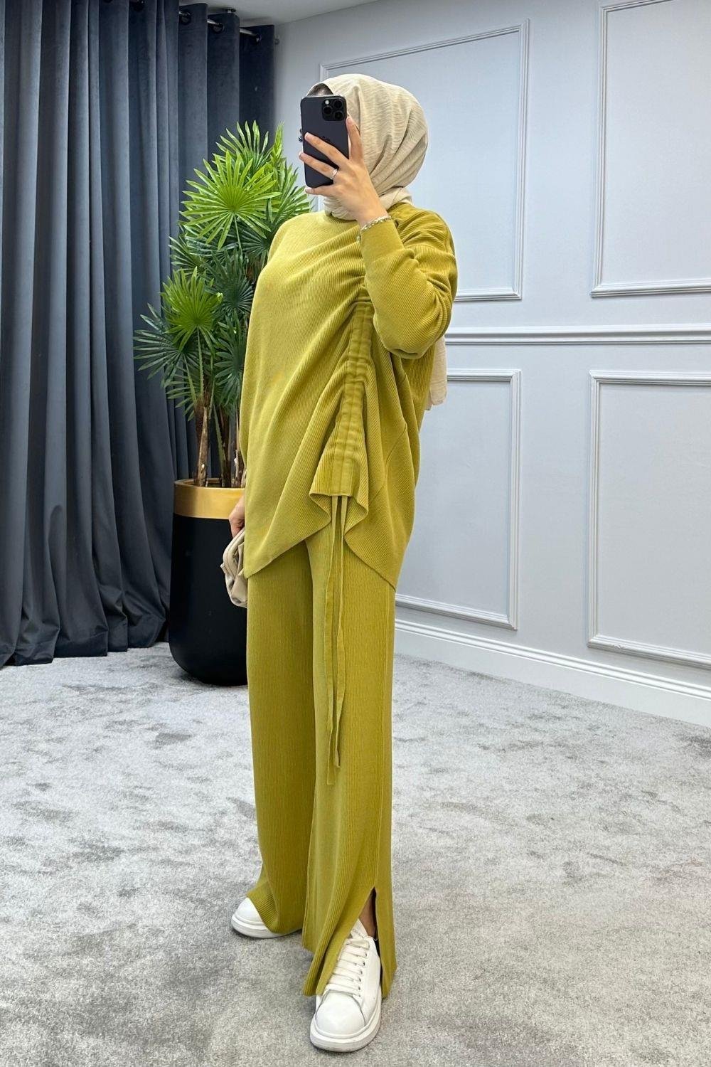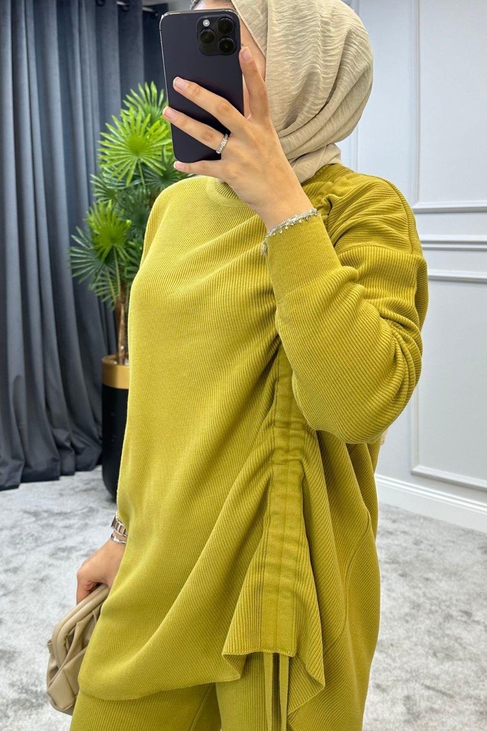 مجموعة ملابس تريكو جانبية مجمعة باللون الأخضر الزيتي (2315)