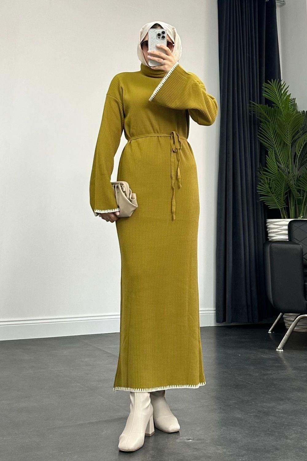 فستان زينب التريكو باللون الأخضر الزيتي (2420)