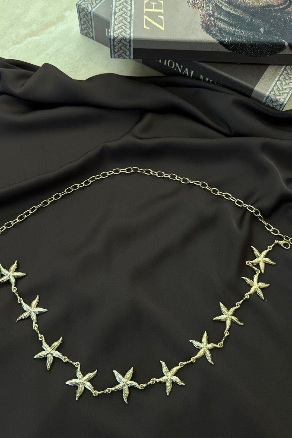 Bel/Kesim Formu: Zincir ve metal yıldız detaylı, tokalı tasarım