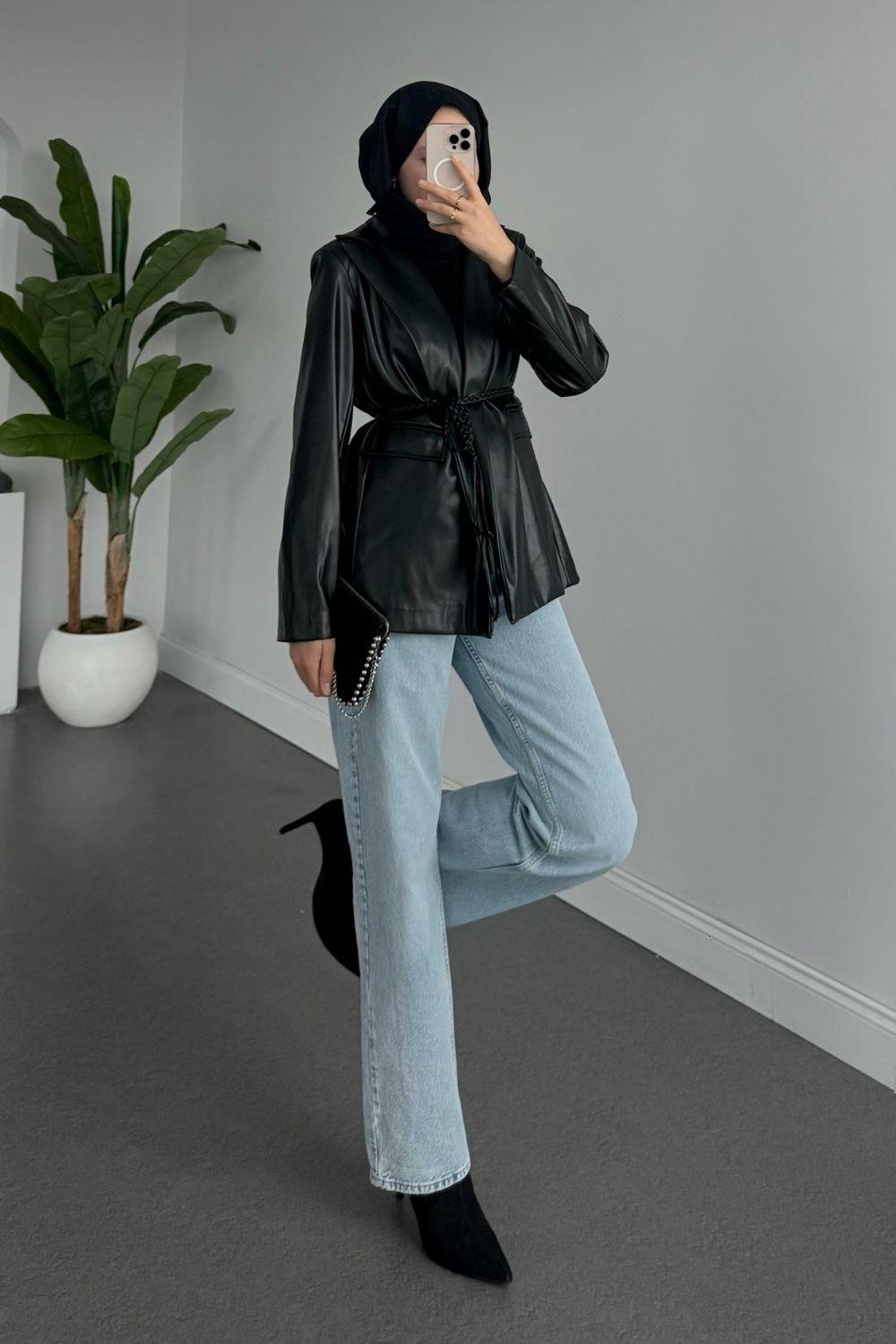 Siyah deri blazer ceket, gardırobun şıklık ve zarafet simgesidir. Modern duruşu ve çok yönlülüğü ile her stilin vazgeçilmezi olur. Hem günlük hem de özel günlerde rahatlıkla tercih edilir. Zamansız tasarımı sayesinde sezonlar boyunca modası geçmez. Kombinlenmesi kolaydır ve her yaşa uygundur. Farklı stillere uyum sağlayarak, kişisel tarzı ön plana çıkarır. Bu nedenle, stil sahibi herkesin dolabında mutlaka bulunması gereken önemli bir parçadır.