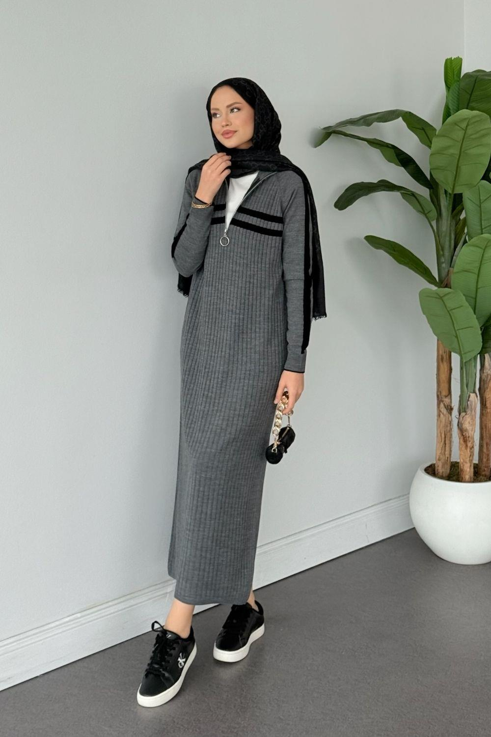 Çizgili Fitilli Fermuarlı Uzun Elbise, günlük kullanımda şıklığı ve konforu bir arada sunar. Tesettür uygun uzun kesimi ile güven hissi verirken, fermuar ve fitil detayları pratik kullanım sağlar. Hem günlük aktivitelerde hem de özel günlerde rahatlıkla tercih edebileceğiniz, zamansız bir tasarımdır.