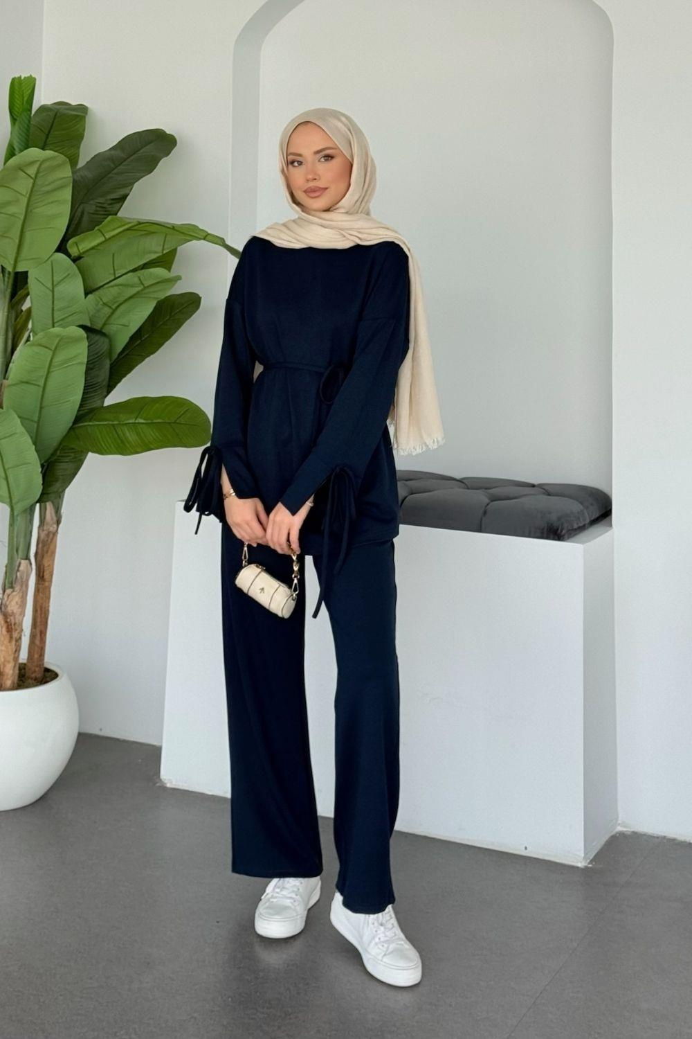 Biga Detaylı Modal Takım, günlük kullanımda konfor ve stili bir arada sunan pratik bir seçenektir. Yumuşak dokusu ve esnek yapısıyla gün boyu rahatlık sağlarken, şık duruşuyla gündelik yaşamdan özel buluşmalara kadar geniş bir yelpazede kullanılabilir. Lastikli bel tasarımı ve ayarlanabilir kuşak detayı ile farklı vücut tiplerine mükemmel uyum sağlar.