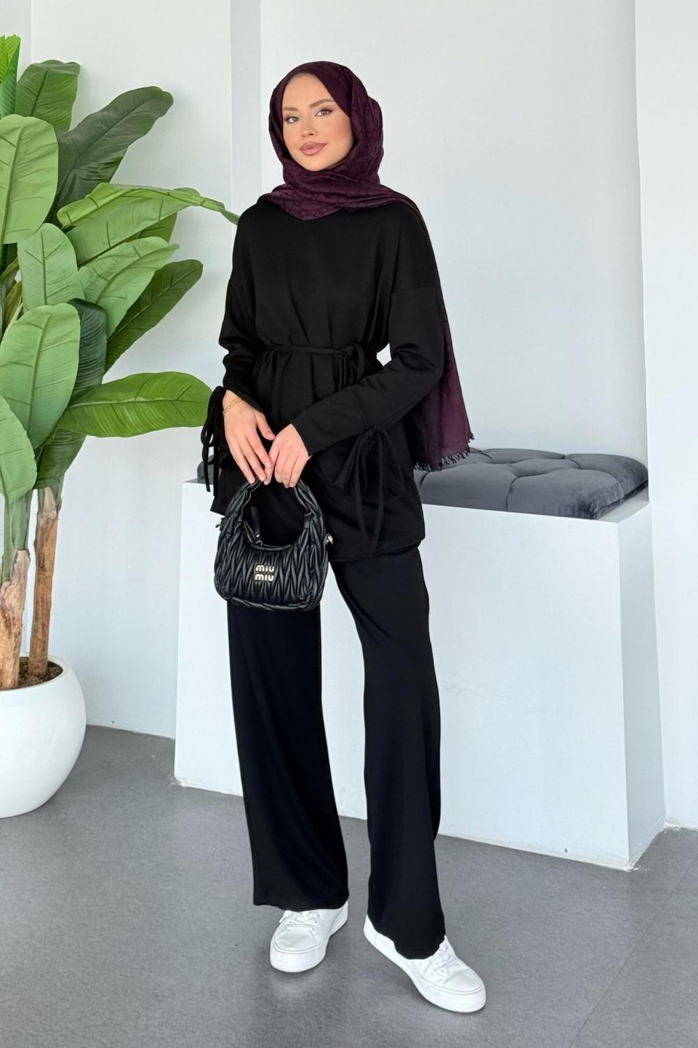 Biga Detaylı Modal Takım, günlük kullanımda konfor ve stili bir arada sunan pratik bir seçenektir. Yumuşak dokusu ve esnek yapısıyla gün boyu rahatlık sağlarken, şık duruşuyla gündelik yaşamdan özel buluşmalara kadar geniş bir yelpazede kullanılabilir. Lastikli bel tasarımı ve ayarlanabilir kuşak detayı ile farklı vücut tiplerine mükemmel uyum sağlar.