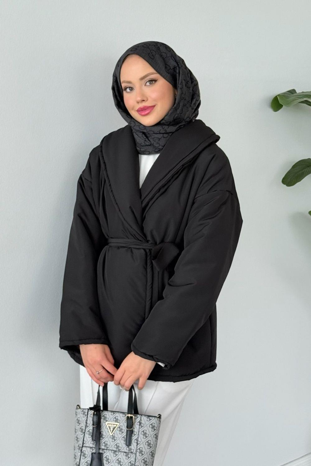 Düz Kuşaklı Şişme Mont Siyah 5912