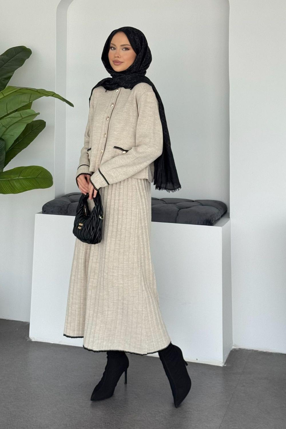 İkili triko takım formunda pratik ve şık kombin imkanı