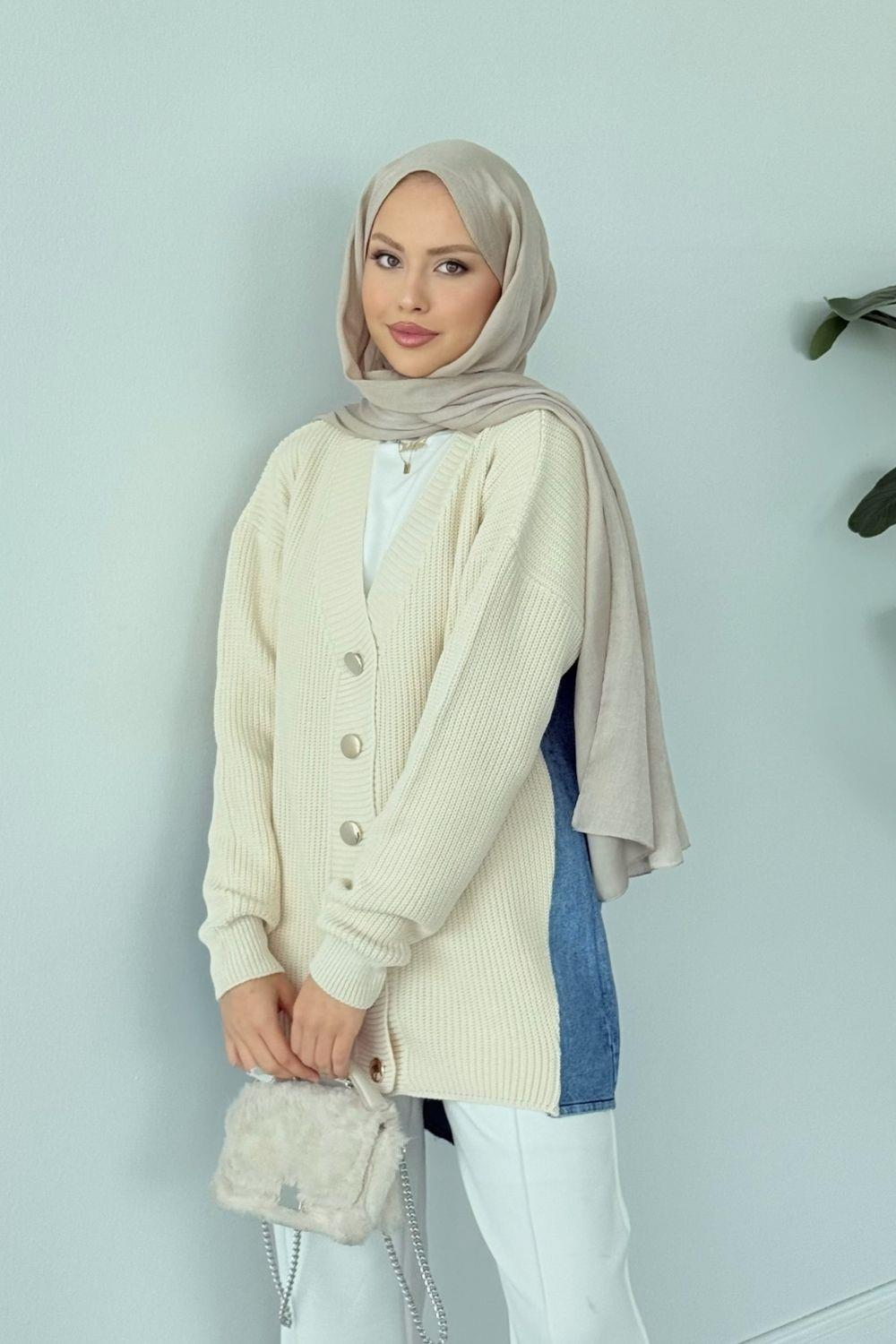 Ritim Yan Arka Kotlu Hırka Bej (2540)
