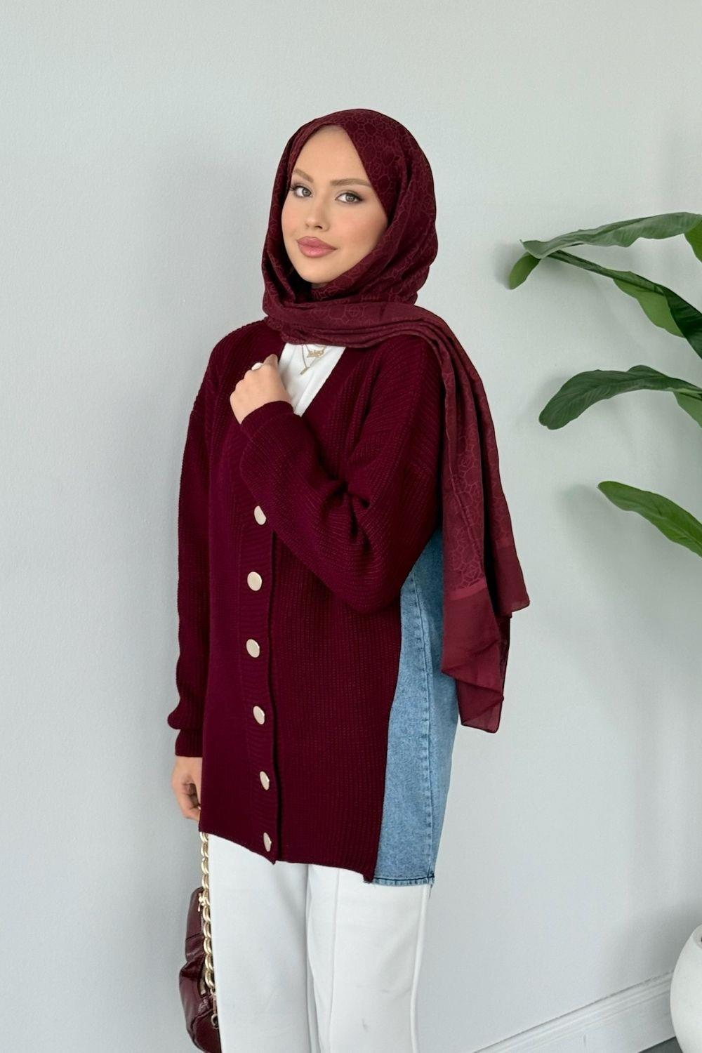 Ritim Yan Arka Kotlu Hırka Bordo (2540)