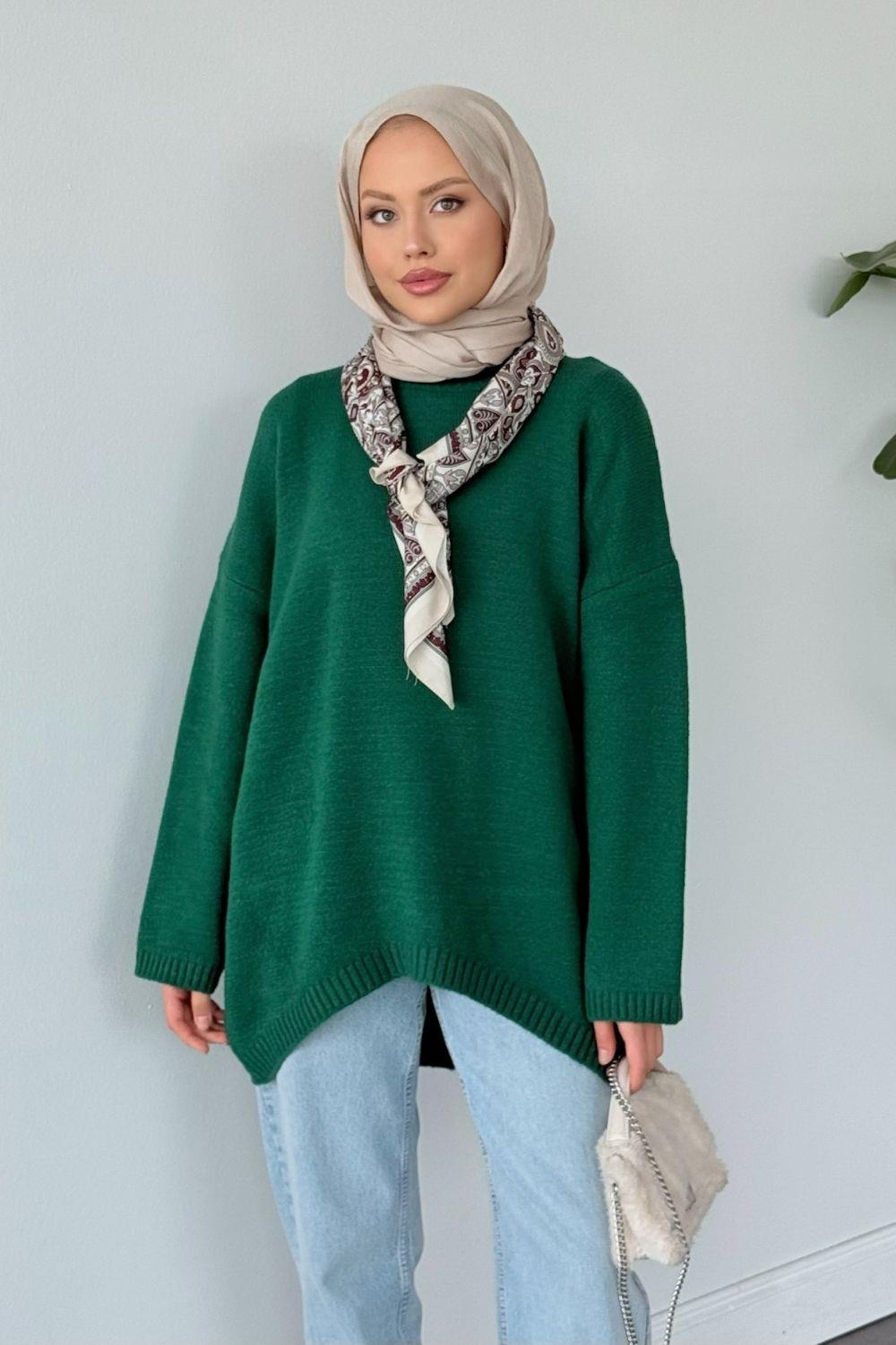 Sezin Ön Oval Kol Salaş Tunik Zümrüt 2530