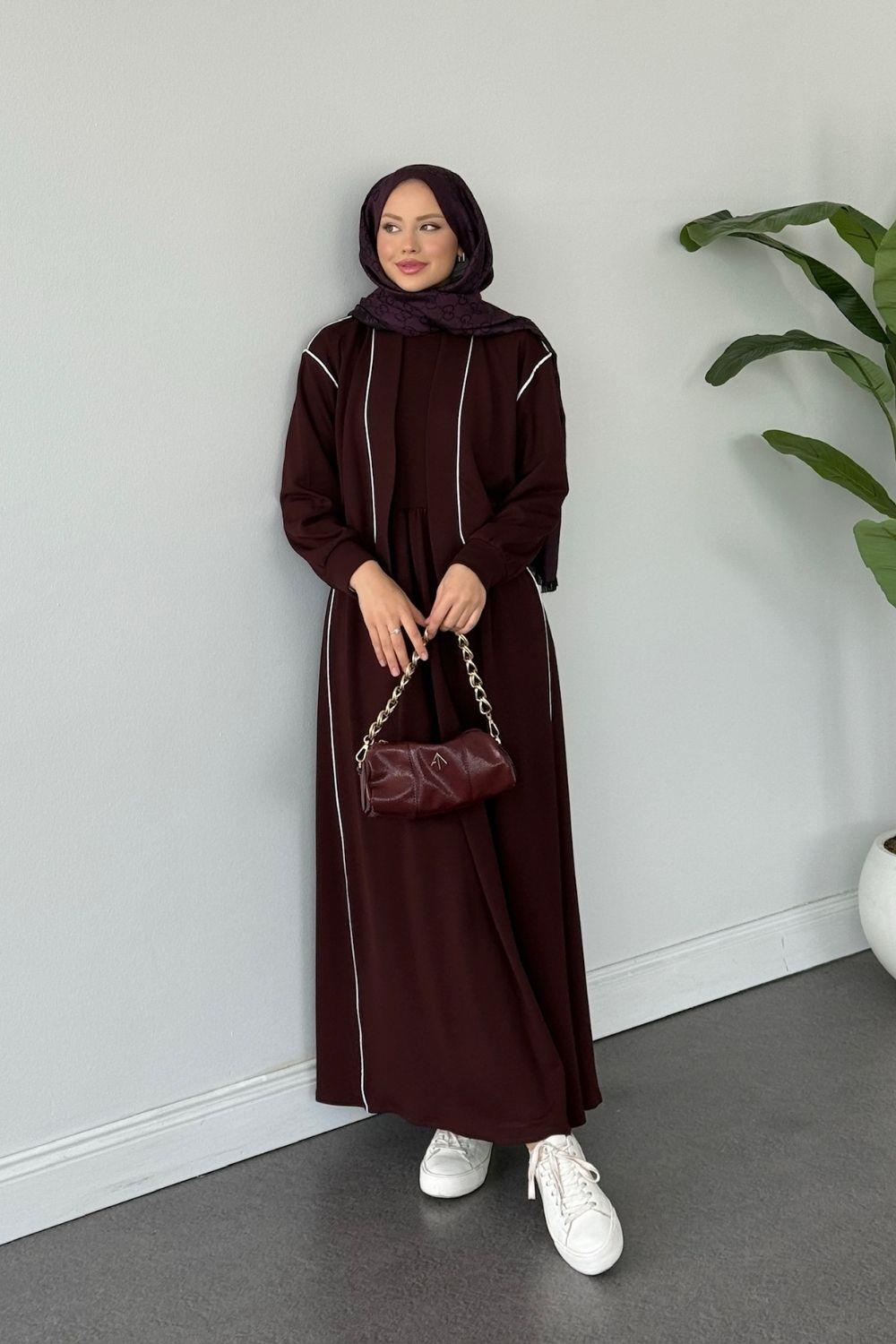 Syon Jileli Pamuklu Elbise Bordo (202210)