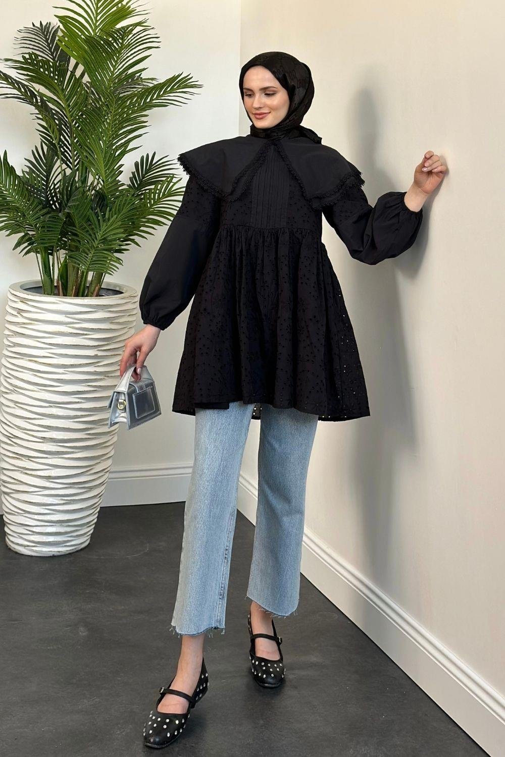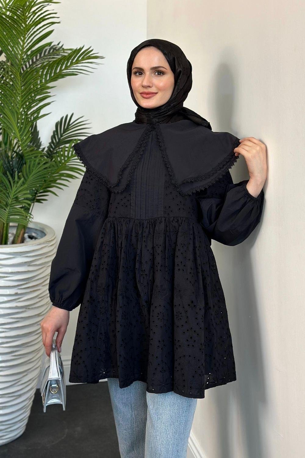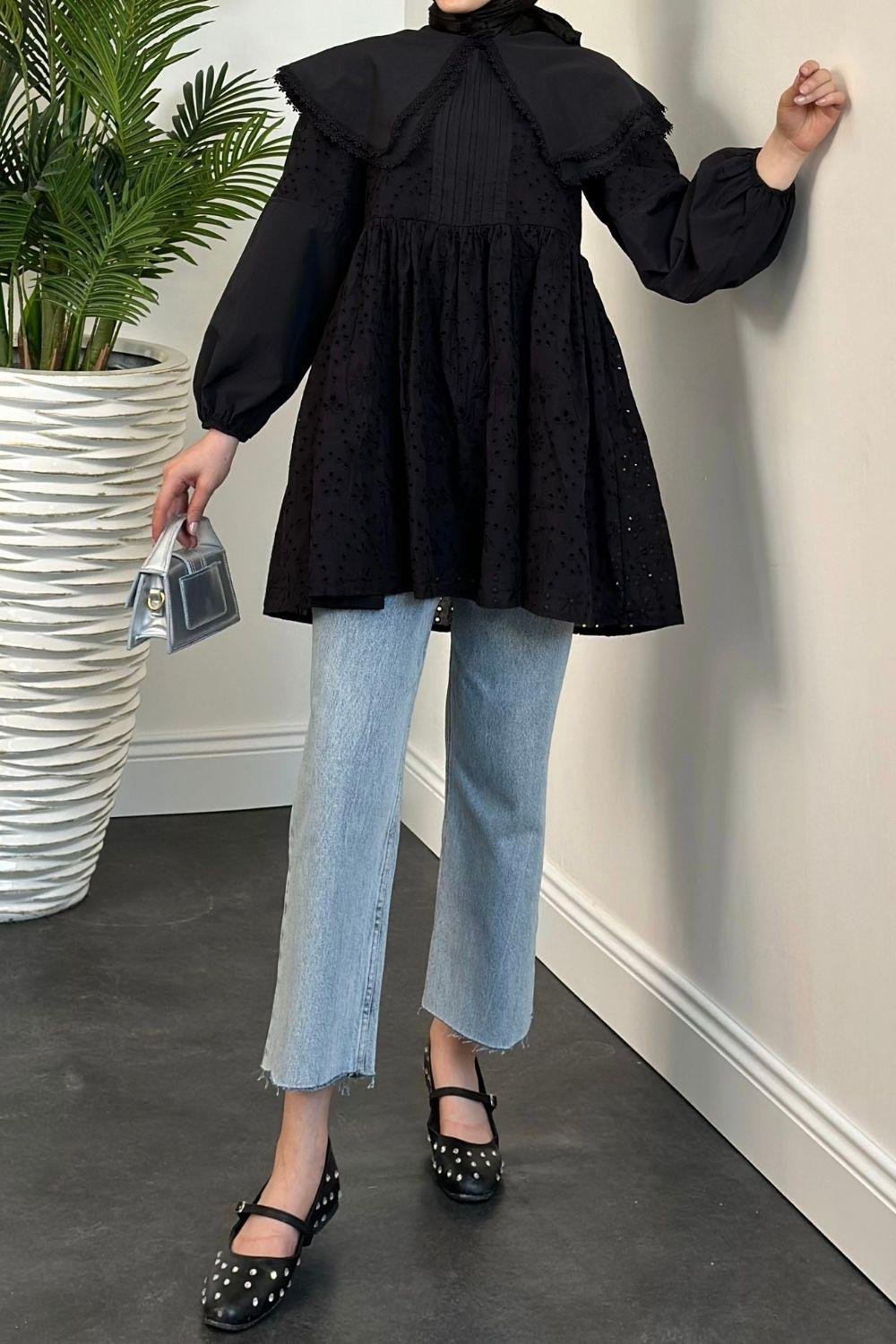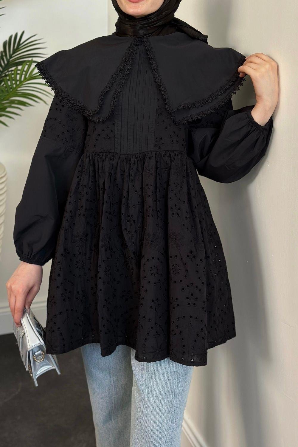 Geniş Yaka Fisto Tunik Siyah (14200)