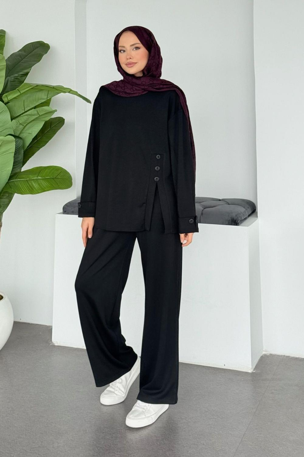 Takım, günlük kullanımda hem konfor hem de şıklık arayanlar için ideal bir seçim. Modal kumaşın yumuşak dokusu ve nefes alabilir yapısı sayesinde tüm gün rahatlık sunarken, düğme detayları ile minimalist bir tarz katıyor. İş günlerinden hafta sonu kaçamaklarına kadar geniş bir kullanım yelpazesine uygun.