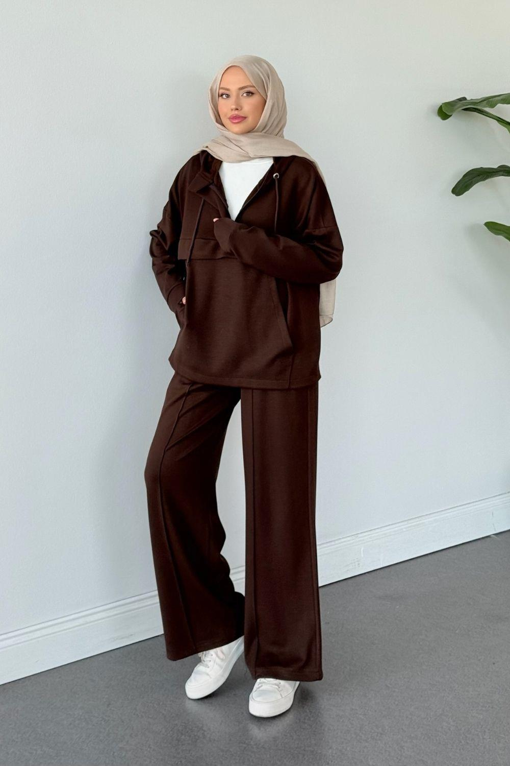 Selvi Yaka Patlı Takım Kahverengi (20216)