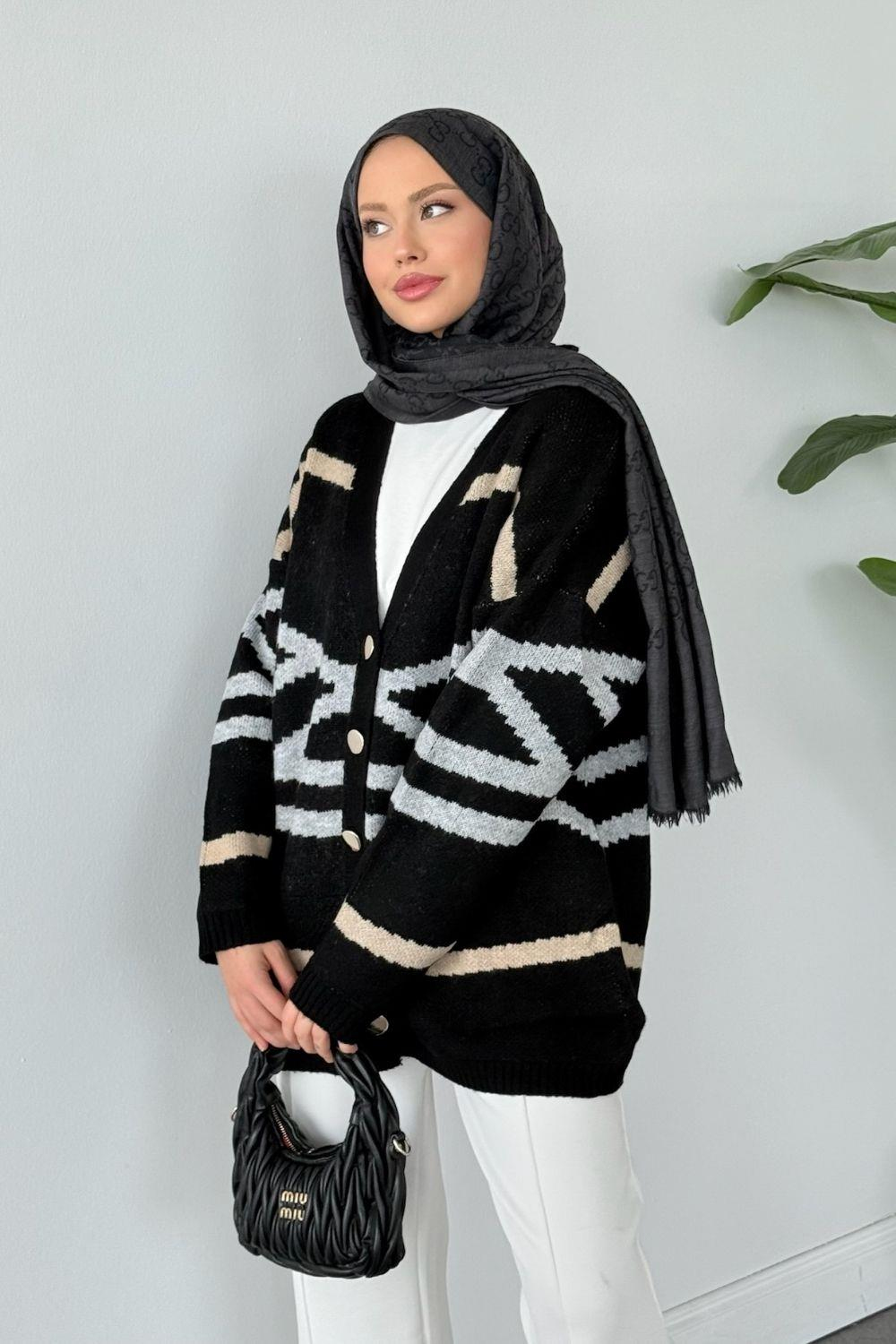Tera Desen Yumoş Salaş Hırka Siyah 25130